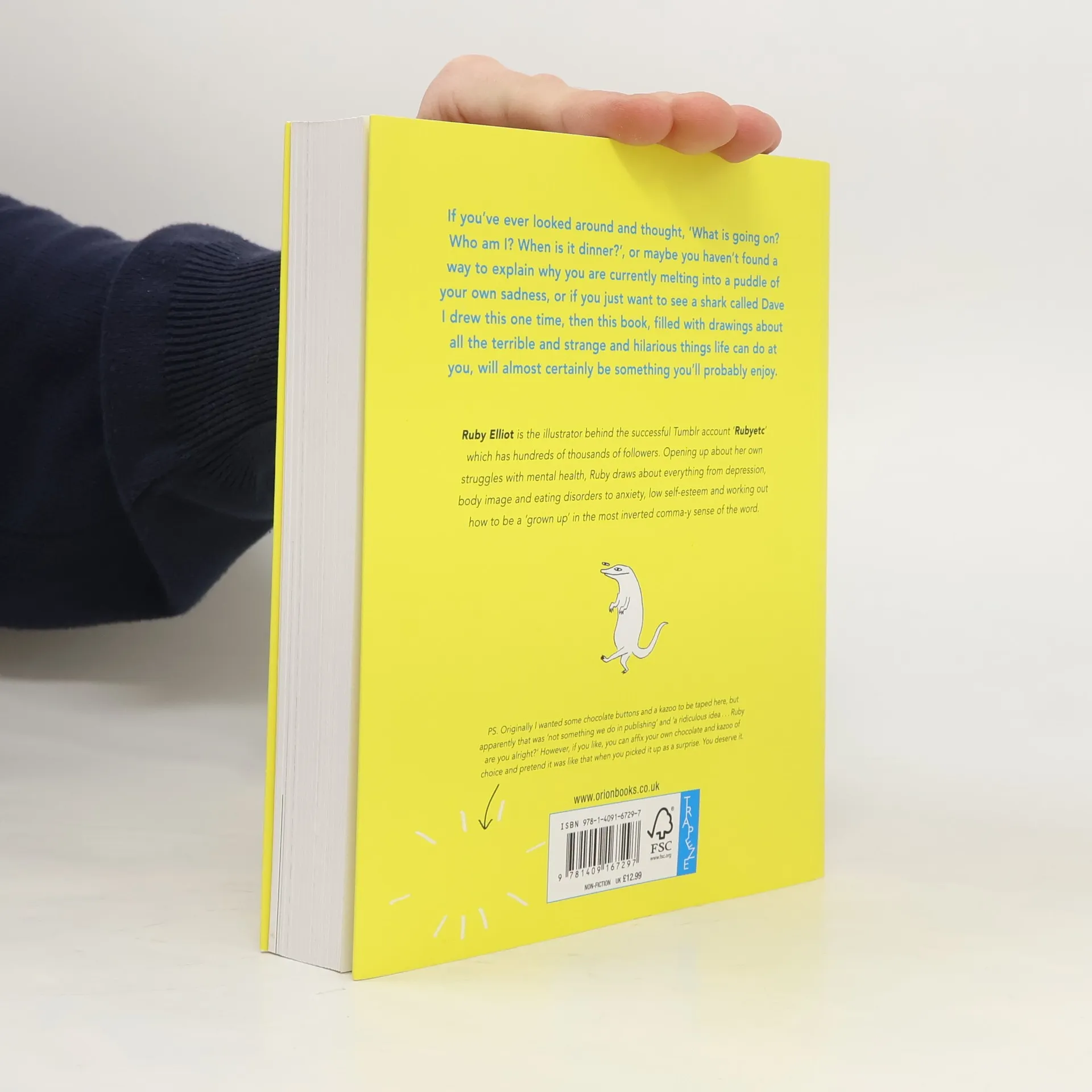 'Her skilled scribblings ... give you the strength to carry on' Felicity Morse, iNews ***** 'The most heartbreaking, incredible book' Phoebe Waller-Bridge, writer and star of Fleabag ***** 'Heartfelt, raw ... moving and clever. A tremendous book' Anne Cater ***** 'Above all, it's just so completely human' Stylist If you've ever looked around and thought, 'What is going on? Who am I? When is it dinner?', or maybe you haven't found a way to explain why you are currently melting into a puddle of your sadness, or if you just want to see a shark called Dave I drew this one time, then this book, filled with drawings about all the terrible and strange and hilarious things life can do at you, will almost certainly be something you'll probably enjoy. *** Opening up about her own struggles with mental health, Ruby draws about everything from depression, body image and eating disorders to anxiety, low self-esteem and working out how to be a 'grown up' in the most inverted comma-y sense of the word.