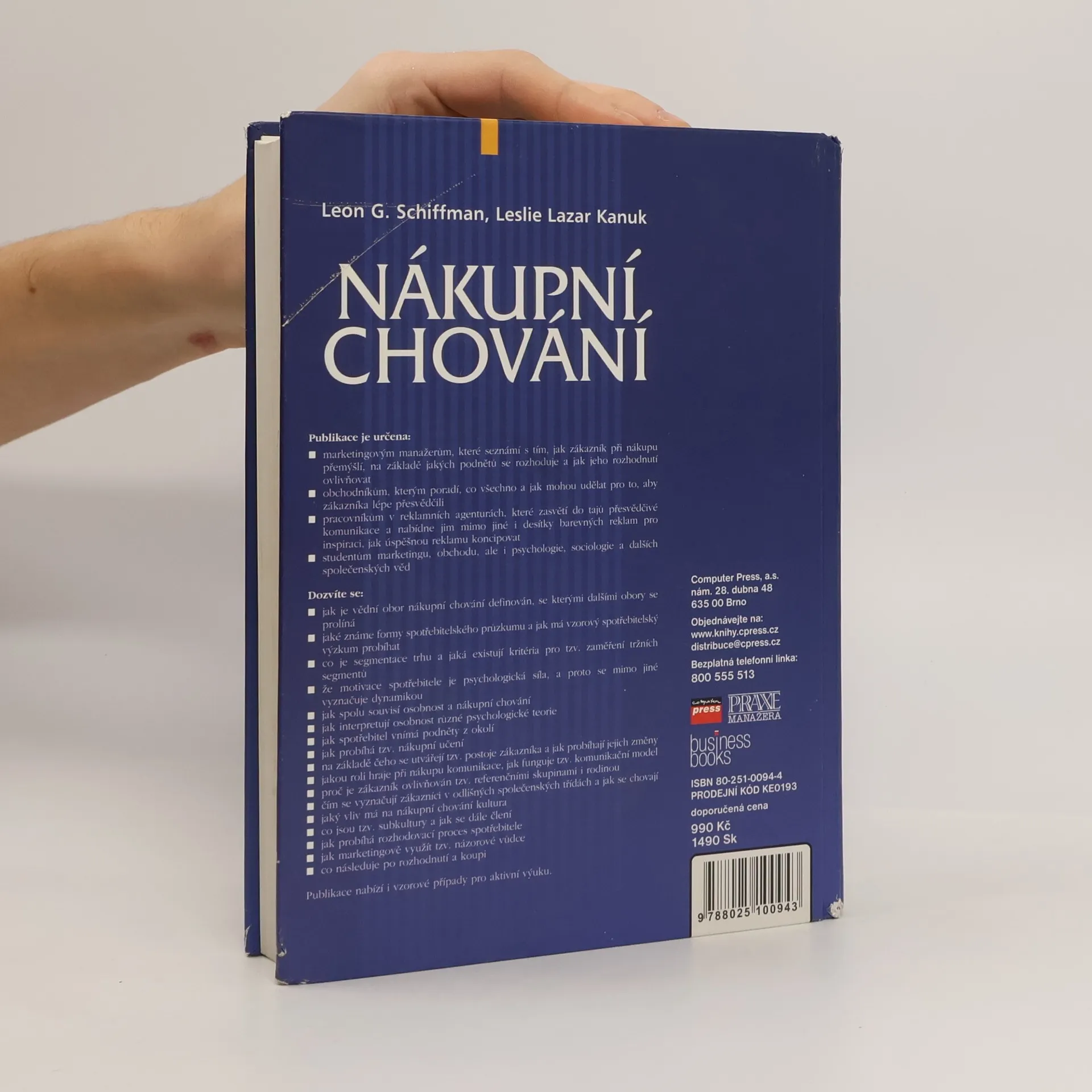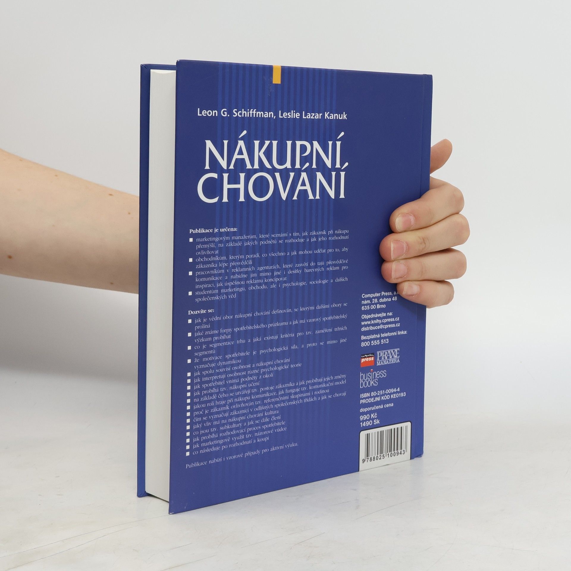 Publikace je určena marketingovým manažerům, obchodníkům, pracovníkům v reklamních agenturách a studentům oborů jako marketing, obchod, psychologie a sociologie. Seznámí čtenáře s tím, jak zákazník při nákupu přemýšlí, jaké podněty ovlivňují jeho rozhodování a jak je možné toto rozhodování ovlivnit. Obsahuje rady, jak lépe přesvědčit zákazníky, a nabízí desítky barevných reklam pro inspiraci. Dozvíte se, jak je definován obor nákupního chování a jak se prolíná s dalšími obory, jaké formy spotřebitelského průzkumu existují a jak probíhá vzorový výzkum. Dále se zaměří na segmentaci trhu, psychologickou motivaci spotřebitele, vztah mezi osobností a nákupním chováním, vnímání podnětů a nákupní učení. Publikace také objasňuje, jak se utvářejí a mění postoje zákazníka, jakou roli hraje komunikace a jak funguje komunikační model. Zkoumá vliv referenčních skupin, rodiny, společenských tříd a kultury na nákupní chování. Popisuje rozhodovací proces spotřebitele a marketingové využití názorových vůdců. Obsahuje také vzorové případy pro aktivní výuku.