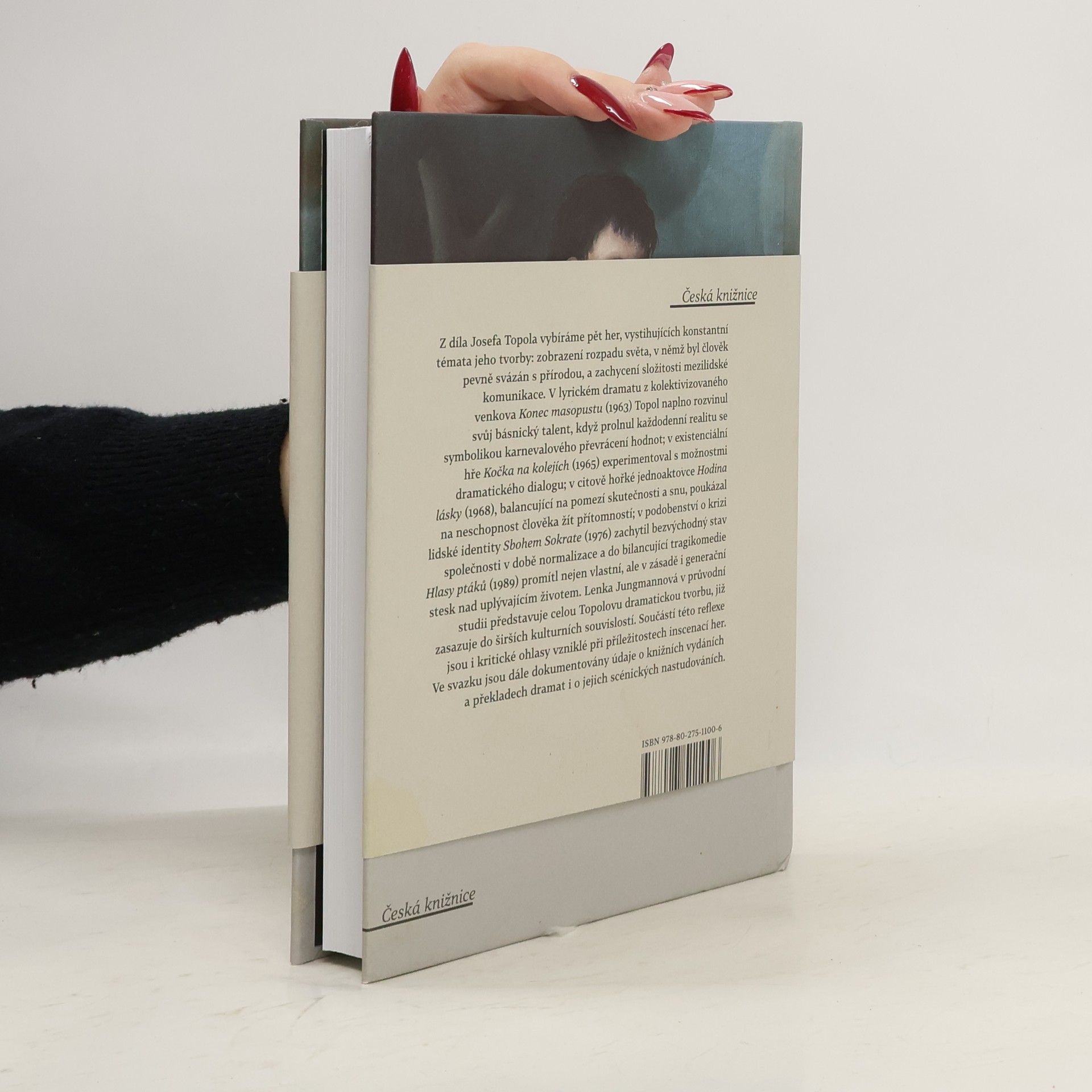 O ztrátě identity a etickém rozměru bytí. Svazek soustřeďuje průřezový výběr z celoživotní dramatické tvorby Josefa Topola (1935—2015), mimo jiné též zakládajícího člena Divadla za branou, signatáře Charty 77 a držitele literární Ceny Karla Čapka. Symbolické básnické drama z kolektivizovaného venkova Konec masopustu (1963), existenciální dialog Kočka na kolejích (1965), citově hořká jednoaktovka Hodina lásky (1968), podobenství o bezvýchodnosti života za normalizace Sbohem, Sokrate! (1975) a bilancující tragikomedie Hlasy ptáků (1989) vystihují konstantní témata Topolovy tvorby, k nimž patří úporné hledání pravdy, lásky a cesty k druhému.