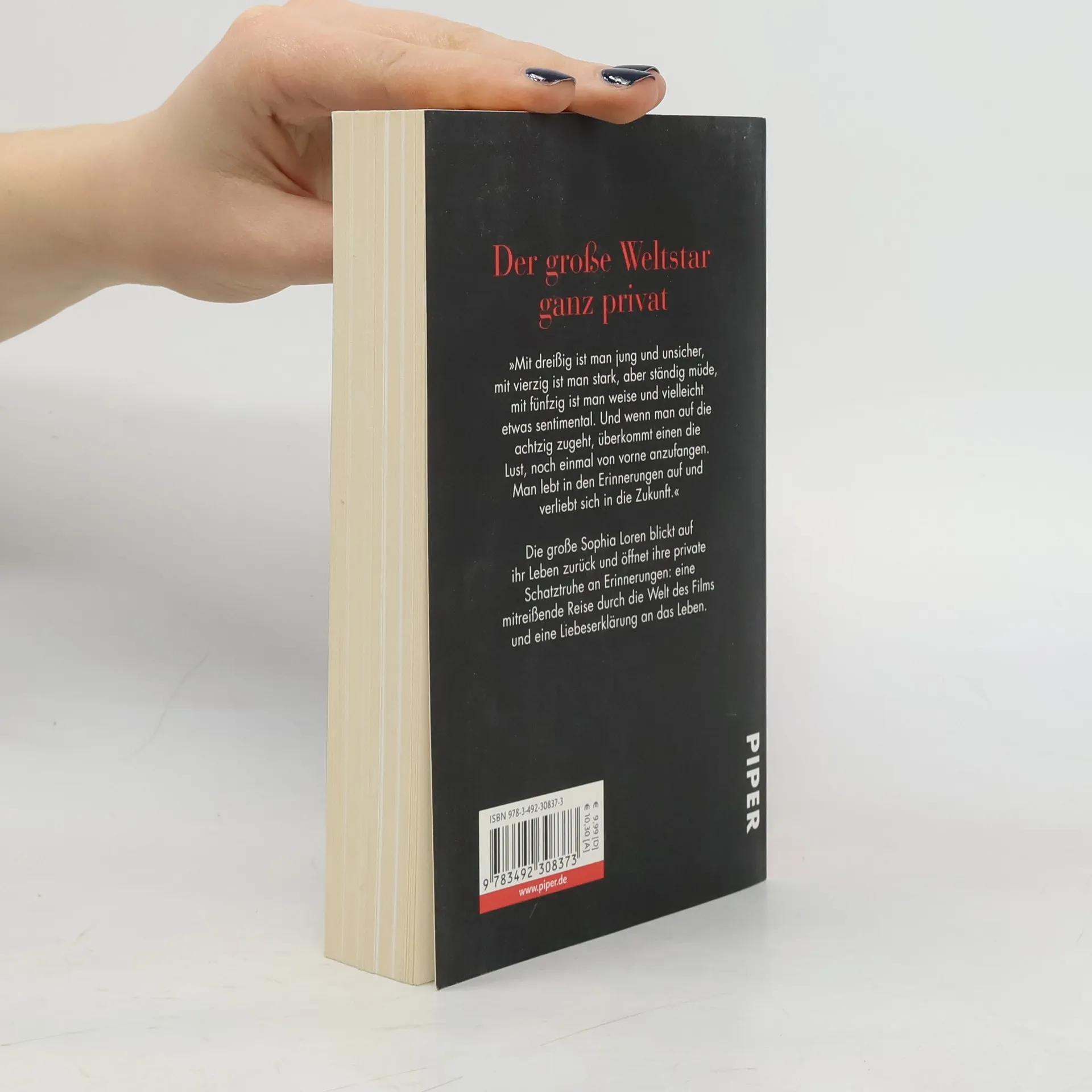 Von vielen wird sie die letzte wahre Diva genannt. Wie keine andere Frau unserer Epoche verkörpert sie Schönheit, Sex und Sinnlichkeit. In ihrer Autobiographie öffnet Sophia Loren die Schatztruhe ihrer Erinnerungen: Sie erzählt, wie sie als uneheliches Kind in großer Armut in Neapel aufwuchs, wie es war, mit Marcello Mastroianni das Traumpaar der Filmwelt darzustellen, mit dem Regisseur Vittorio De Sica zu arbeiten und mit Charlie Chaplin, Anthony Quinn, John Wayne und Cary Grant, der ihr einen Heiratsantrag machte. Eine mitreißende Reise durch die Welt des Films und eine Liebeserklärung an das Leben.