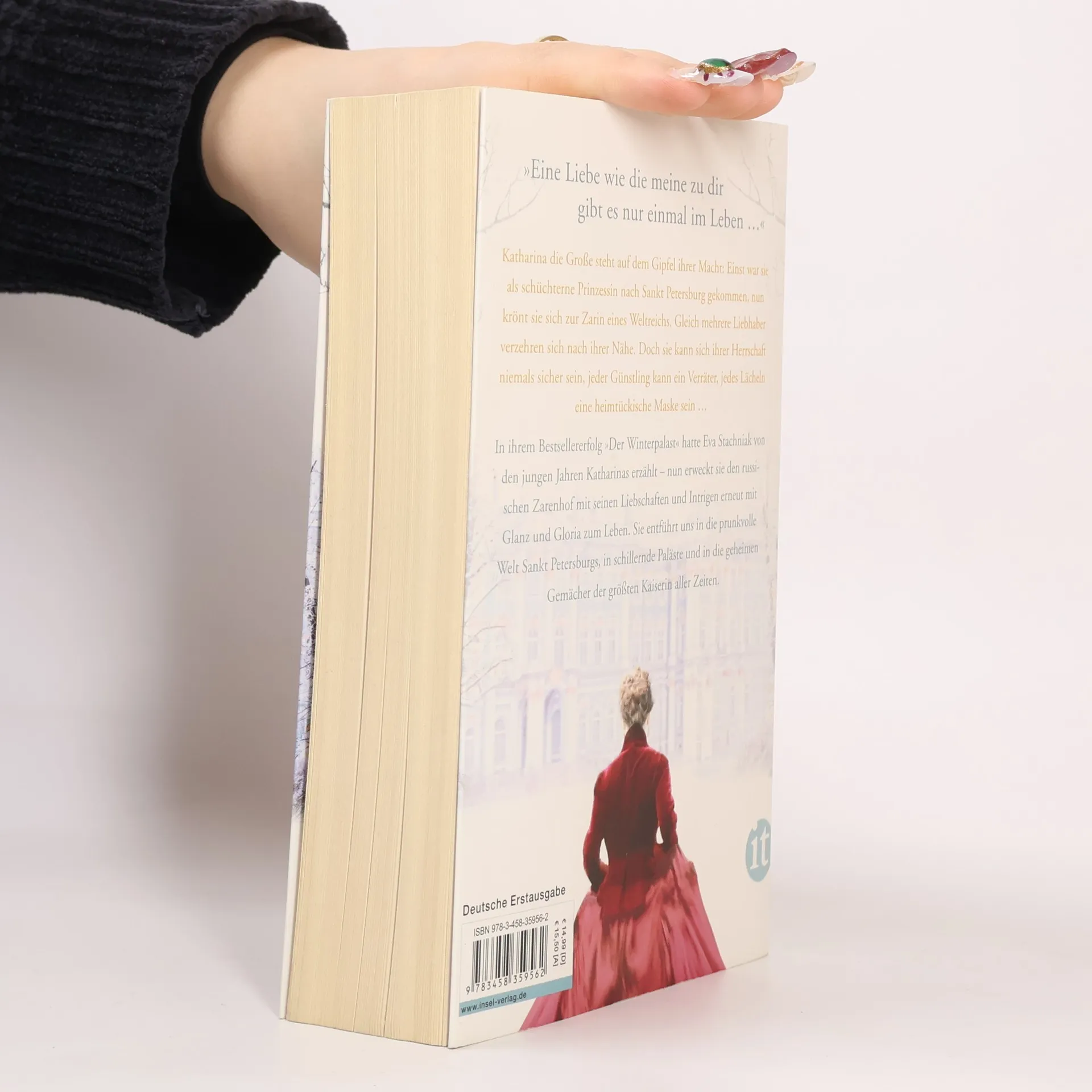 Katharina steht auf dem Gipfel ihrer Macht: Einst war sie als schüchterne Prinzessin nach St. Petersburg gekommen, nun hat sie ihren Ehemann, Zar Peter III., vom Thron gestürzt. Jahrelang hatte er sie gedemütigt und zurückgewiesen, nun reißt sie die Macht an sich und krönt sich zur Alleinherrscherin über ein Weltreich. An ihrer Seite steht Grigori Orlow, ihr Geliebter, ebenso mutig wie sie, mit demselben Willen zur Macht. Doch Katharina ist nicht nur von Günstlingen umgeben, sondern auch von Neidern und falschen Freunden, ihre Herrschaft ist stets bedroht: Hinter jedem Vertrauten lauert ein Dolch, und jedes Lächeln kann die Maske eines Verrats sein … Eva Stachniak knüpft an ihren Bestsellererfolg »Der Winterpalast« an und erweckt den russischen Zarenhof mit Glanz und Gloria zum Leben. Sie entführt ihre Leser in die prunkvolle Welt St. Petersburgs, in schillernde Paläste und in die geheimen Gemächer der größten Kaiserin aller Zeiten.