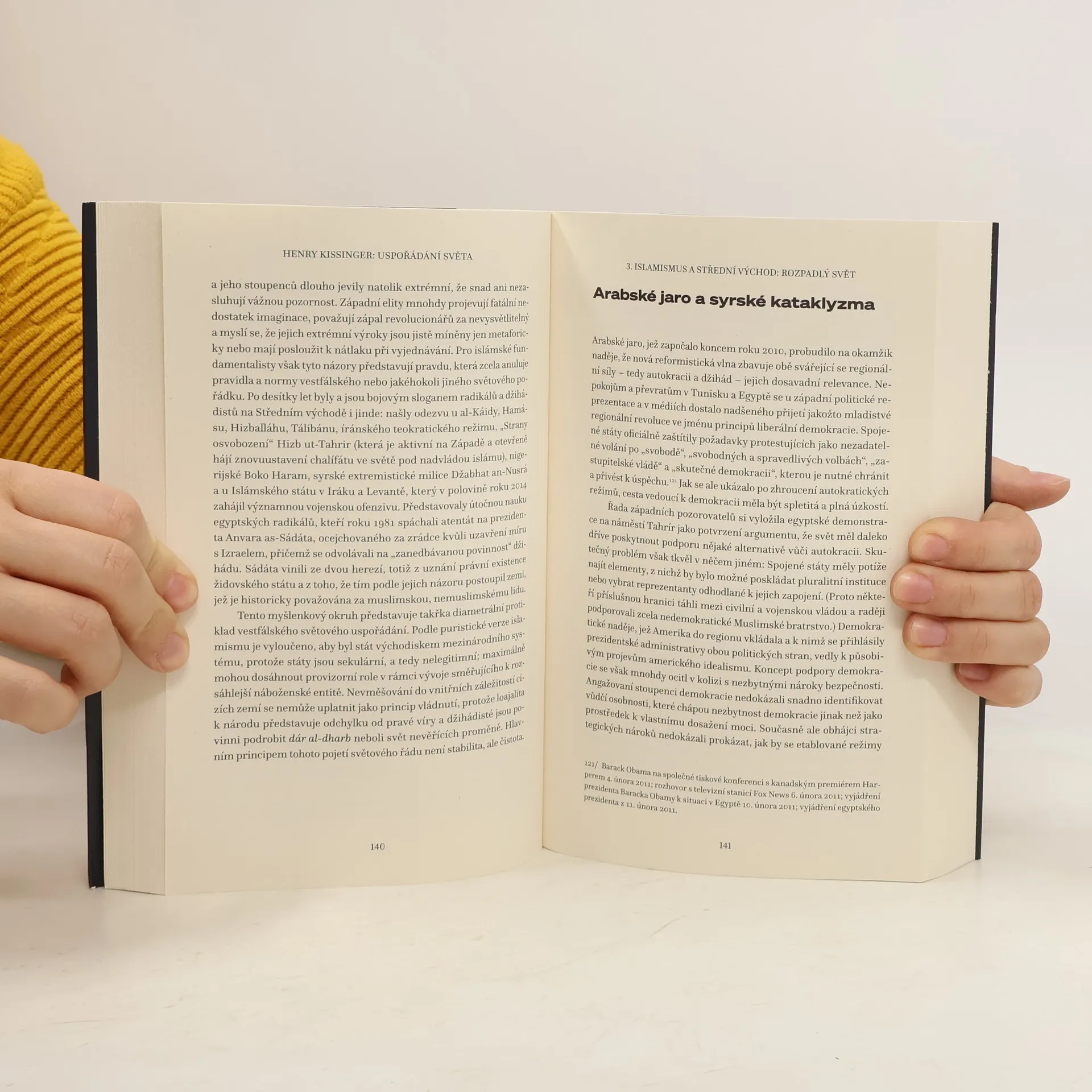 Třetí vydání zásadní práce vlivného politologa, historika a bývalého ministra zahraničí USA z roku 2014 přináší mnohostranný pohled na současný světový řád, podložený historickými a politickými souvislostmi. Autor ukazuje, že kořeny mezinárodních vztahů byly poprvé formulovány v západní Evropě před čtyřmi staletími na mírové konferenci v Vestfálsku. Mír po třicetileté válce odrážel pragmatické vyrovnání s realitou a byl založen na společenství suverénních států, které kontrolují ambice prostřednictvím mocenské rovnováhy. Vestfálský systém se postupně rozšířil a přijal různé civilizace a regiony. Autor sleduje proměny tohoto systému po Francouzské revoluci a napoleonských válkách, zejména na vídeňském kongresu, a jak se s jeho stavebními kameny vyrovnávaly jiné části světa. Zvláštní pozornost věnuje Střednímu východu, odlišným koncepcím mocenské rovnováhy v Evropě a Asii, včetně čínské „harmonie pod nebesy“. Analyzuje také americké politické vize, které se vyvinuly od systému vyvažování k šíření demokratických principů. Kissingerovy úvahy hledají perspektivu světového řádu pro současnost tváří v tvář výzvám, jako jsou islamismus, šíření jaderných zbraní a globalizace.