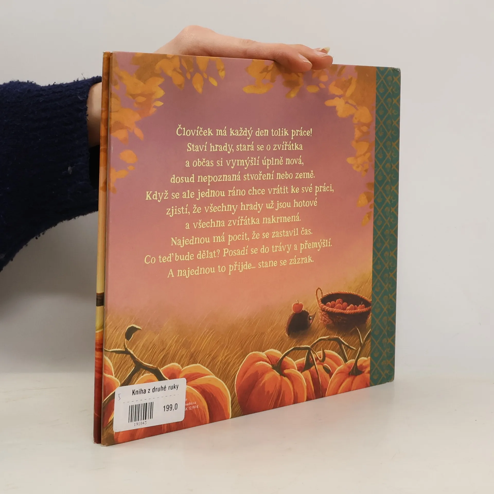Poetická pohádka s ilustracemi od tvůrce milované velryby Gerdy. Človíček má každý den tolik práce! Staví hrady, stará se o zvířátka a občas si vymýšlí úplně nová, dosud nepoznaná stvoření nebo země. Když se ale jednou ráno chce vrátit ke své práci, zjistí, že všechny hrady už jsou hotové a všechna zvířátka nakrmená. Najednou má pocit, že se zastavil čas. Co teď bude dělat? Posadí se do trávy a přemýšlí. A najednou to přijde… stane se zázrak.