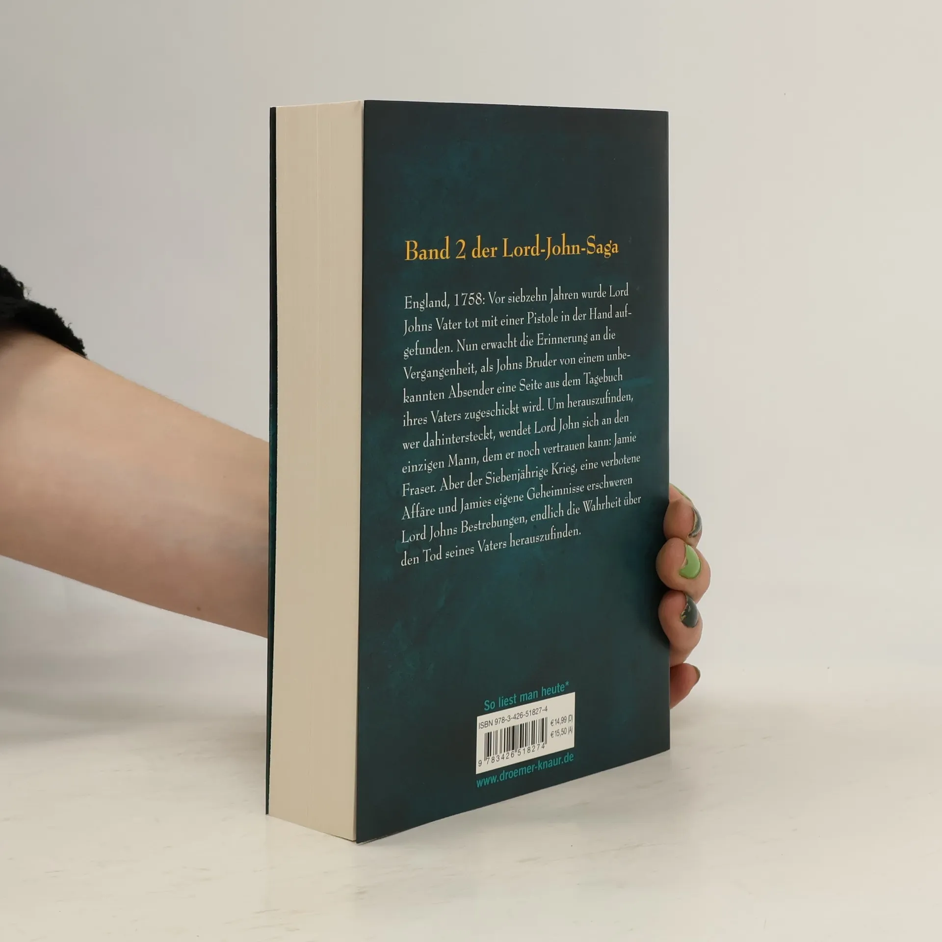 Der zweite Band der Lord-John-Saga endlich wieder lieferbar. Alle Fans der berühmten „Outlander“-Reihe von Diana Gabaldon kennen Lord John Grey als einen von Jamie Frasers besten Freunden. Doch auch abseits der Ereignisse aus „Outlander“ erlebt er spannende Abenteuer. England, 1758: Vor siebzehn Jahren wurde Lord Johns Vater tot mit einer Pistole in der Hand aufgefunden. Nun erwacht die Erinnerung an die Vergangenheit, als Johns Bruder von einem unbekannten Absender eine Seite aus dem Tagebuch ihres Vaters zugeschickt wird. Um herauszufinden, wer dahinter steckt, wendet Lord John sich an den einzigen Mann, dem er noch vertrauen kann: Jamie Fraser. Aber der Siebenjährige Krieg, eine verbotene Affäre und Jamies eigene Geheimnisse erschweren Lord Johns Bestrebungen, endlich die Wahrheit über den Tod seines Vaters herauszufinden.