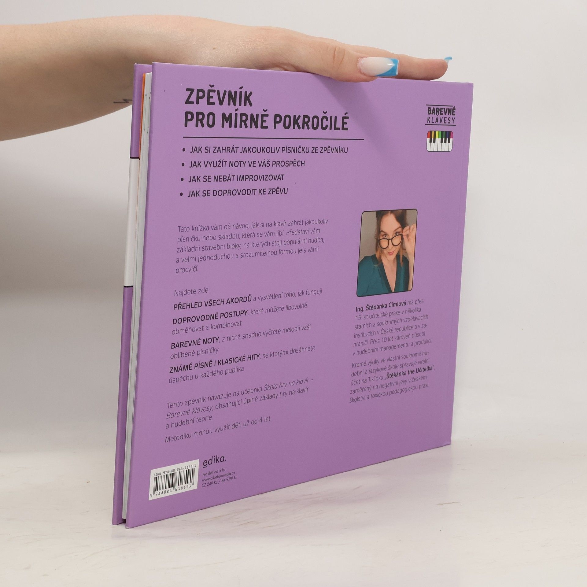 Zpěvník doplňuje úspěšnou Školu hry na klavír, která pomocí unikátní metody Barevných kláves snadno otevře dětem i dospělým cestu ke zvládnutí hry na klavír. Zpěvník představí základní stavební bloky populární hudby. Najdete v něm nejen písničky a klasické skladby, ale také srozumitelný přehled všech akordů a jednoduché i složitější doprovodné postupy.