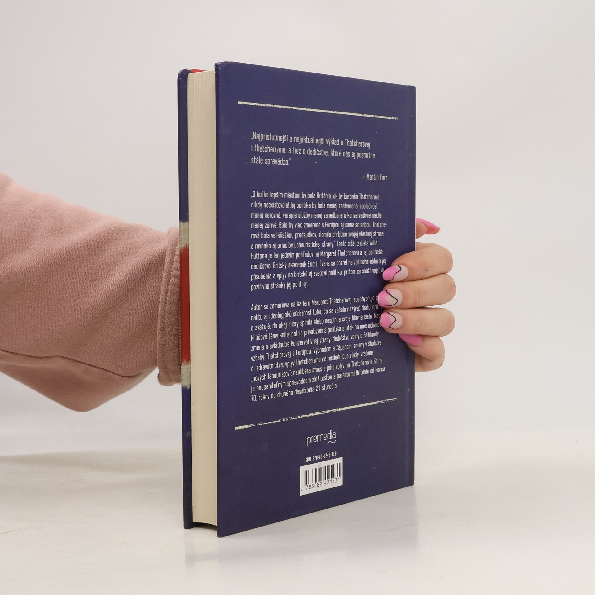 Autor sa zameriava na kariéru Margaret Thatcherovej, spochybňuje originalitu a ideologickú súdržnosť thatcherizmu a hodnotí, do akej miery splnila svoje hlavné ciele. Citát od Willa Huttona naznačuje, aký iný by bol britský politický a spoločenský kontext bez jej existencie. Britský akademik Eric J. Evans skúma jej vplyv na britskú a svetovú politiku a snaží sa nájsť aj pozitívne aspekty jej politiky. Kľúčové témy zahŕňajú privatizačnú politiku, útok na moc odborov, zmenu a ovládnutie Konzervatívnej strany, dedičstvo vojny o Falklandy, vzťahy s Európou, Východom a Západom, ako aj reformy v školstve a zdravotníctve. Autor sa zaoberá aj vplyvom thatcherizmu na nasledujúce vlády, vrátane „nových labouristov“, a jeho prepojením s neoliberalizmom. Kniha ponúka hlboký pohľad na komplexnosť a paradoxy britskej politiky od konca 70. rokov do začiatku 21. storočia, pričom poskytuje cenné analýzy a kontext pre porozumenie súčasným politickým otázkam.