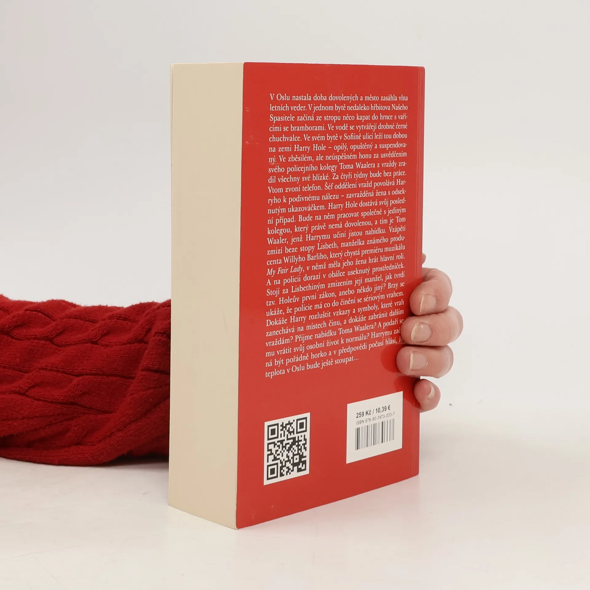 V Oslu začíná období prázdnin a dovolených a město zasáhla vlna letních veder. V jednom bytě nedaleko hřbitova Našeho Spasitele začíná ze stropu něco kapat do hrnce s vařícími se bramborami. Ve vodě se tvoří drobné černé chuchvalce. Ve svém bytě v Sofiině ulici leží tou dobou na zemi Harry Hole – opilý, opuštěný a suspendovaný. Ve zběsilém, ale neúspěšném honu za usvědčením svého policejního kolegy Toma Waalera z vraždy zradil všechny své blízké. Za čtyři týdny bude bez práce. Vtom zvoní telefon. Šéf oddělení vražd povolává Harryho k podivnému nálezu – zavražděná žena s odseknutým prstem. Harry Hole dostává svůj poslední případ. Bude na něm pracovat společně s jediným kolegou, který právě nemá dovolenou, s Tomem Waalerem, jenž Harrymu učiní jistou nabídku. Vzápětí zmizí beze stopy Lisbeth, manželka známého producenta Willyho Barliho, který chystá premiéru muzikálu My Fair Lady, v němž měla jeho žena hrát hlavní roli. A na policii dorazí v obálce useknutý prstem. Stojí za Lisbethiným zmizením její manžel, jak tvrdí tzv. Holeův první zákon, anebo někdo jiný? Brzy se ukáže, že policie má co do činění se sériovým vrahem. Dokáže Harry rozluštit vzkazy a symboly, které vrah zanechává na místech činu, a dokáže zabránit dalším vraždám? Přijme nabídku Toma Waalera? A podaří se mu vrátit svůj osobní život k normálu? Harrymu začíná být pořádně horko. 2. vydání