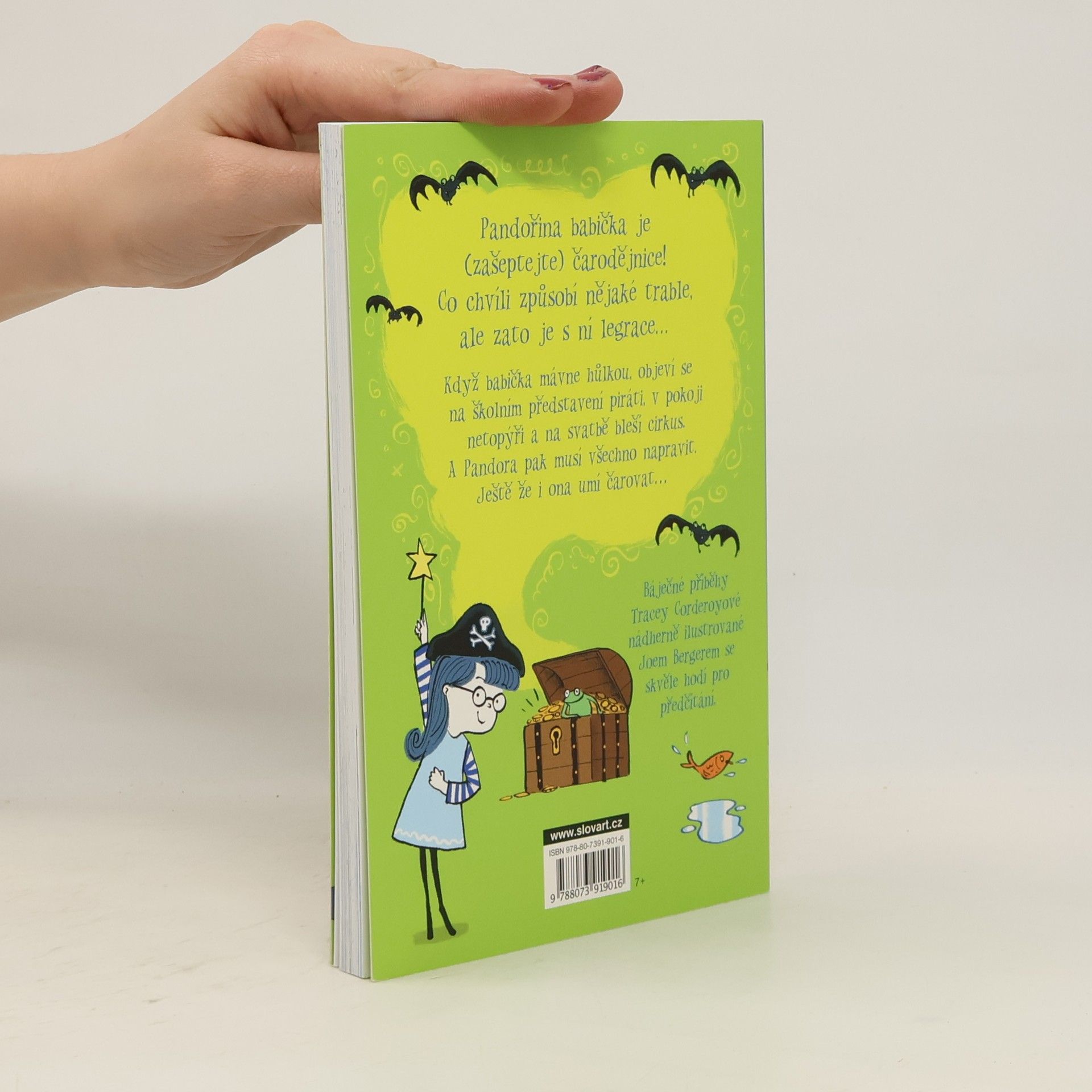 Pandořina babička je (pssst!) čarodějnice. Je s ní legrace, ale také se často dostává do problémů... Když mávne svou hůlkou, objeví se na školním představení piráti, z pokojíčku je zámecká komnata a na svatbě řádí bleší cirkus. A Pandora pak musí všechno napravit. Ještě že i ona umí čarovat...