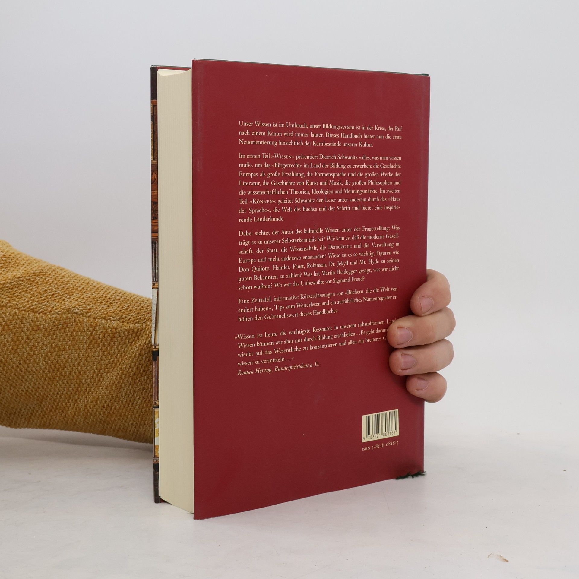Ein Bildungskanon, der aufzeigt, was wesentlich ist. Schwanitz hat unser Allgemeinwissen durchleuchtet und unser kulturelles Gedächtnis neu ausgerichtet. Er beseitigt die Barrieren, die vielen den Zugang zu unserer Kultur versperren, und unterdrückt jeden Bildungsdünkel. In Zeiten eines Bildungssystems in der Krise wird der Ruf nach einem Kanon lauter. Dieses Handbuch bietet eine Neuorientierung zu den Kernbeständen unserer Kultur. Im ersten Teil „Wissen“ präsentiert Schwanitz alles, was man wissen muss, um das „Bürgerrecht“ im Land der Bildung zu erwerben: die große Erzählung der europäischen Geschichte, die Formensprache und bedeutende literarische Werke, Kunst- und Musikgeschichte, Philosophen sowie wissenschaftliche Theorien und Ideologien. Der zweite Teil „Können“ führt den Leser durch das „Haus der Sprache“, die Welt des Buches und der Schrift und bietet inspirierende Länderkunde. Schwanitz fragt, was unser kulturelles Wissen zur Selbsterkenntnis beiträgt und untersucht die Ursprünge moderner Gesellschaften in Europa. Er beleuchtet die Bedeutung bekannter literarischer Figuren und bietet informative Zusammenfassungen von „Büchern, die die Welt verändert haben“. Eine Zeittafel, Tipps zum Weiterlesen und ein ausführliches Namenregister erhöhen den Nutzen dieses Handbuchs.