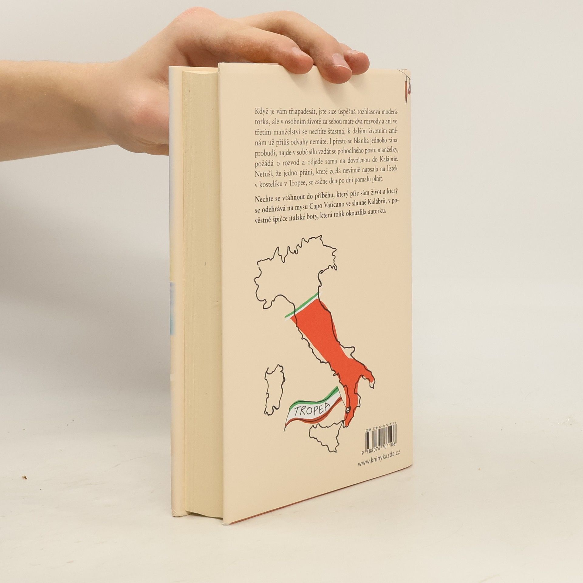 Když je vám třiapadesát, jste sice úspěšná rozhlasová moderátorka, ale v osobním životě za sebou máte dva rozvody a ani ve třetím manželství se necítíte šťastná, k dalším životním změnám už příliš odvahy nemáte. I přesto se Blanka jednoho rána probudí, najde v sobě sílu vzdát se pohodlného postu manželky, požádá o rozvod a odjede sama na dovolenou do Kalábrie. Netuší, že jedno přání, které zcela nevinně napsala na lístek v kostelíku v Tropee, se začne den po dni pomalu plnit. Nechte se vtáhnout do příběhu, který píše sám život a který se odehrává na mysu Capo Vaticano ve slunné Kalábrii, v pověstné špičce italské boty, která tolik okouzlila autorku.