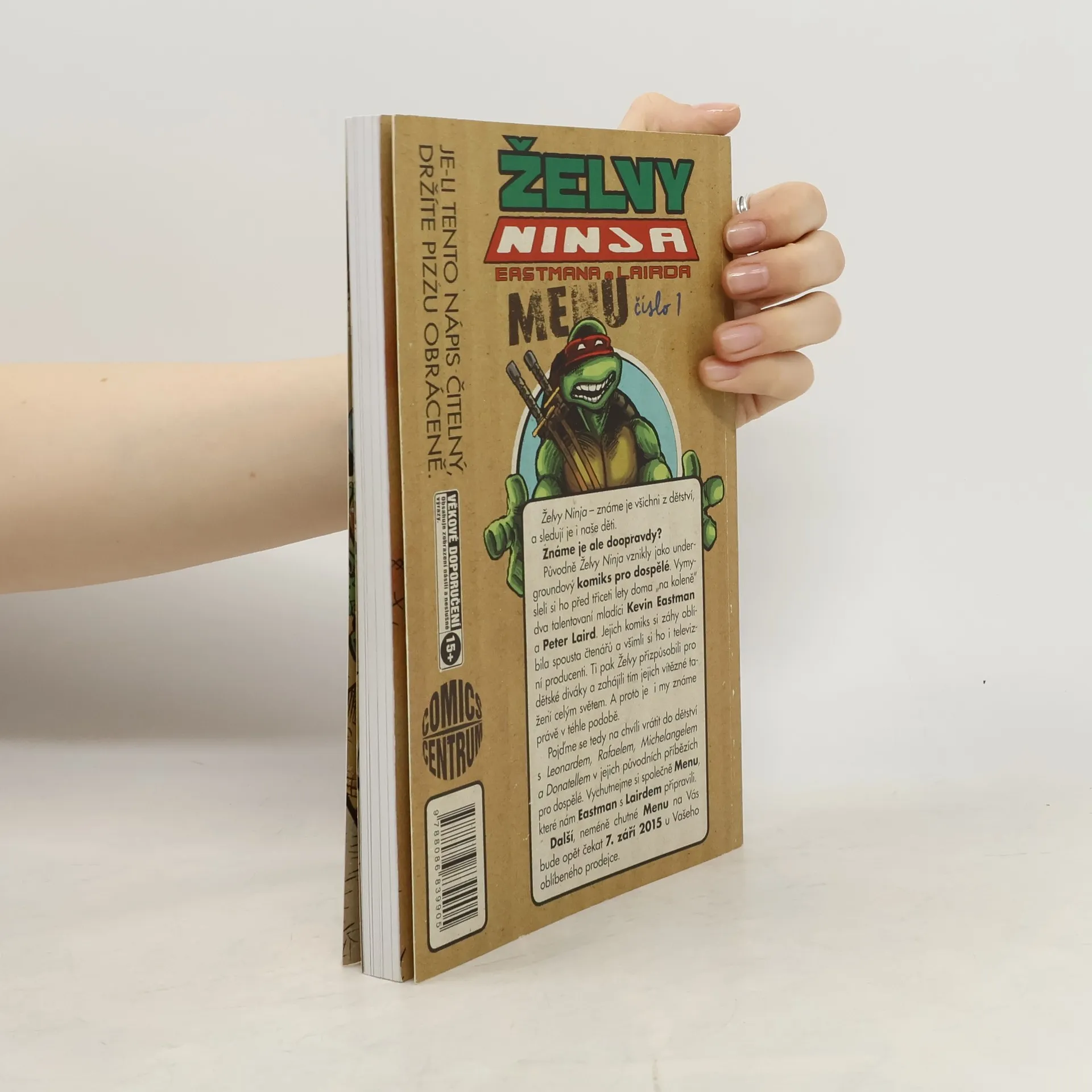 Želvy Ninja – známe je všichni z dětství, a sledují je i naše děti. Známe je ale doopravdy? Původně Želvy Ninja vznikly jako undergroundový komiks pro dospělé vymysleli si ho před třiceti lety doma „na koleně“ dva talentovaní mladíci Kevin Eastman a Peter Laird. Jejich komiks si záhy oblíbila spousta čtenářů a všimli si ho i televizní producenti. Ti pak Želvy přizpůsobili pro dětské diváky a zahájili tím jejich vítězné tažení celým světem. A proto je i my známe právě v téhle podobě. Pojďme se tedy na chvíli vrátit do dětství s Leonardem, Rafaelem, Michelangelem a Donatellem v jejich původních příbězích pro dospělé. Vychutnejme si společně Menu, které nám Eastman s Lairdem připravili.