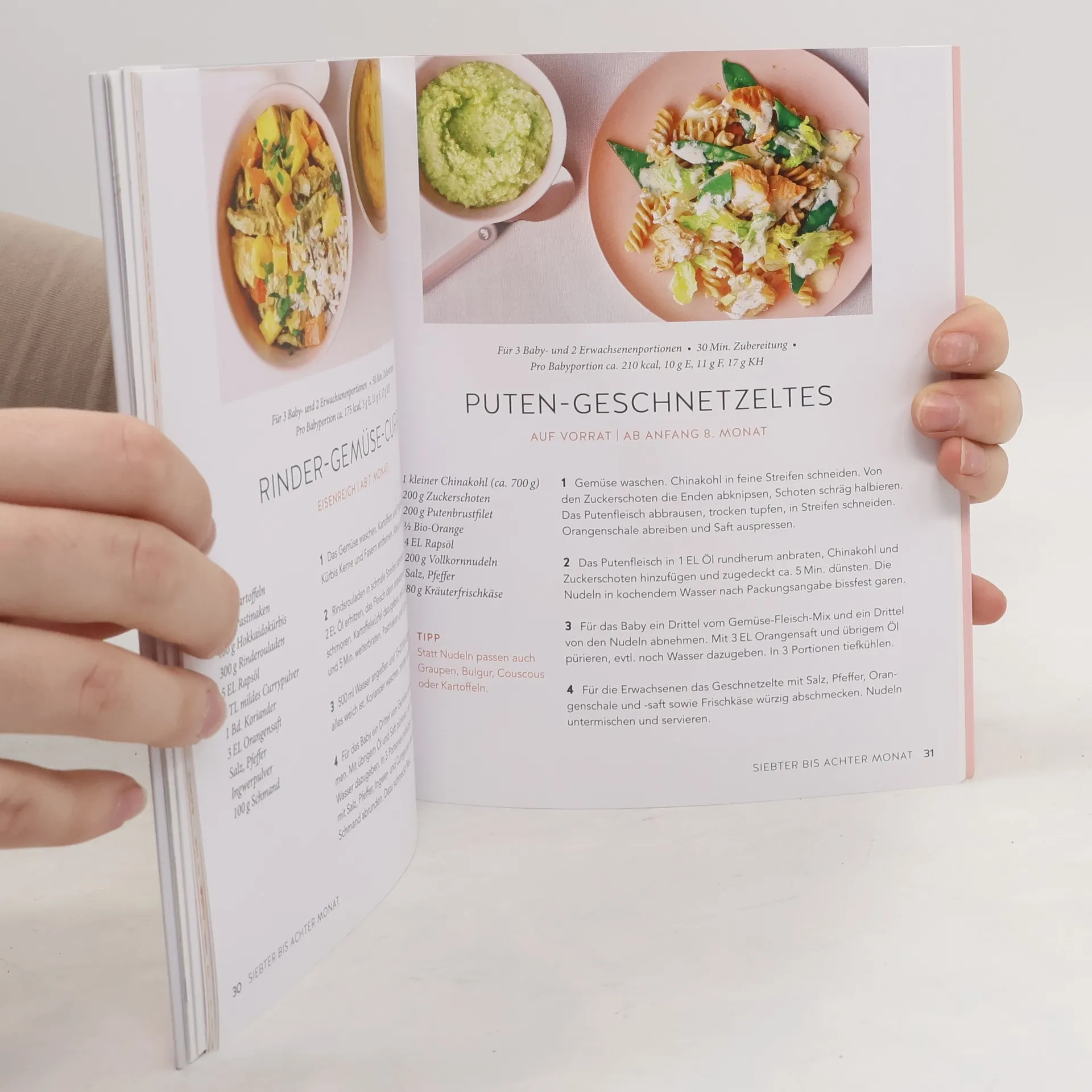 Das Baby ist da! Mütter wünschen sich nun vor allem Sicherheit, dass ihr Kleines gesund aufwächst. Top-Expertin Dagmar von Cramm hat im GU-Küchenratgeber „Kochen für Babys“ alles Wichtige zusammengefasst: Bewährte und neue Rezepte, von den ersten Breien bis zu gemeinsamen Mahlzeiten, abgestimmt auf das Alter des Kindes (5. Monat bis 1 Jahr). Ernährungswissenschaftlich ausgewogen, ideal auch für kochunerfahrene Mütter. Mit hilfreichen Tipps und praktischen Hinweisen rund um die Babynahrung. Gesunde Rezepte wie Kürbisbrei, Zucchinibrei mit Lachs und Fingerfood wie Müslibällchen machen Baby und Mama glücklich!