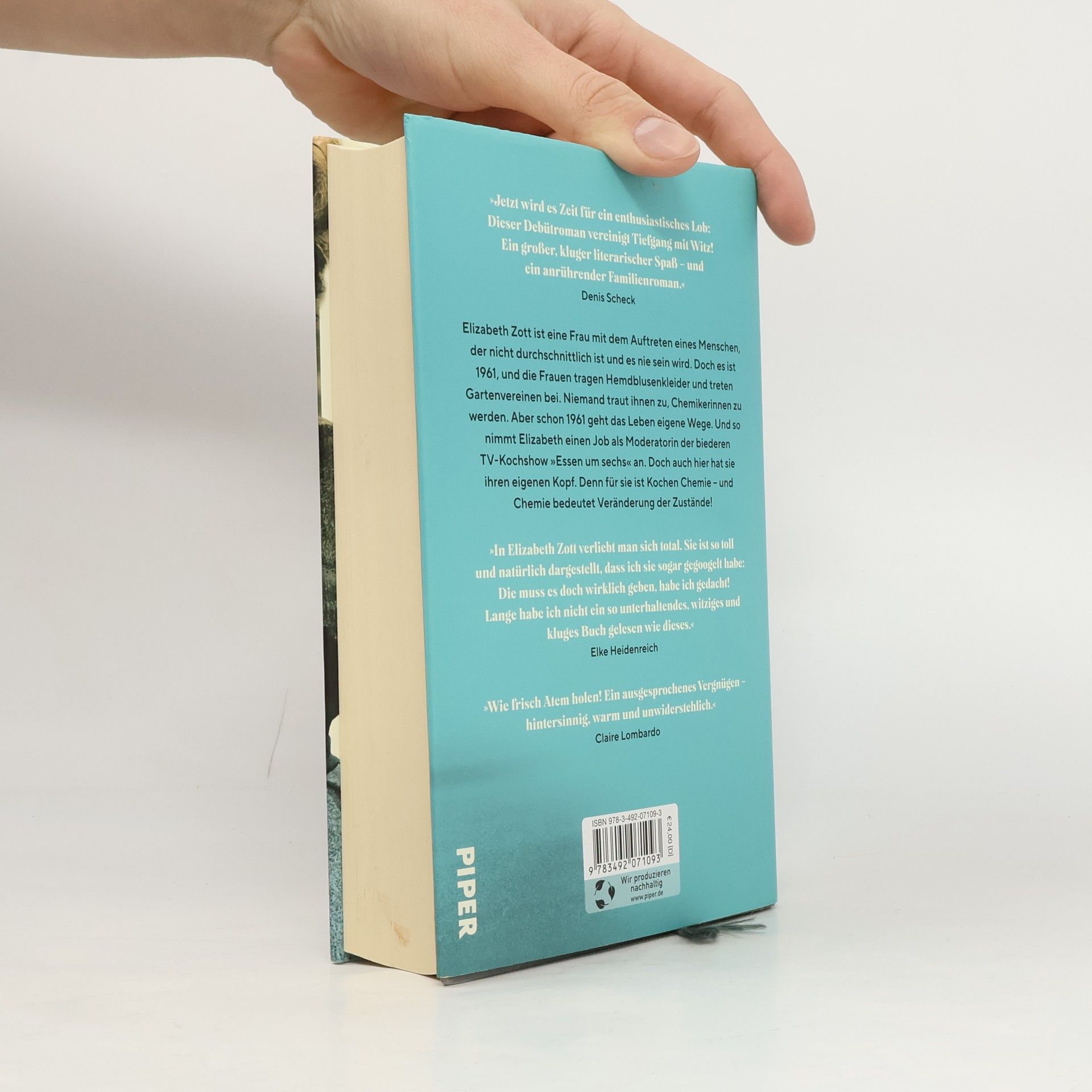 Etzt wird es Zeit für ein enthusiastisches Lob: Dieser Debütroman vereinigt Tiefgang mit Witz! Ein großer, kluger literarischer Spaß - und ein anrührender Familienroman.« Denis ScheckElizabeth Zott ist eine Frau mit dem Auftreten eines Menschen, der nicht durchschnittlich ist und es nie sein wird. Doch es ist 1961, und die Frauen tragen Hemdblusenkleider und treten Gartenvereinen bei. Niemand traut ihnen zu, Chemikerinnen zu werden. Aber schon 1961 geht das Leben eigene Wege. Und so nimmt Elizabeth einen Job als Moderatorin der biederen TV-Kochshow »Essen um sechs« an. Doch auch hier hat sie ihren eigenen Kopf. Denn für sie ist Kochen Chemie - und Chemie bedeutet Veränderung der Zustände!»In Elizabeth Zott verliebt man sich total. Sie ist so toll und natürlich dargestellt, dass ich sie sogar gegoogelt habe: Die muss es doch wirklich geben, habe ich gedacht! Lange habe ich nicht ein so unterhaltendes, witziges und kluges Buch gelesen wie dieses.« Elke Heidenreich»Wie frisch Atem holen! Ein ausgesprochenes Vergnügen - hintersinnig, warm und unwiderstehlich [Buchzentrum]