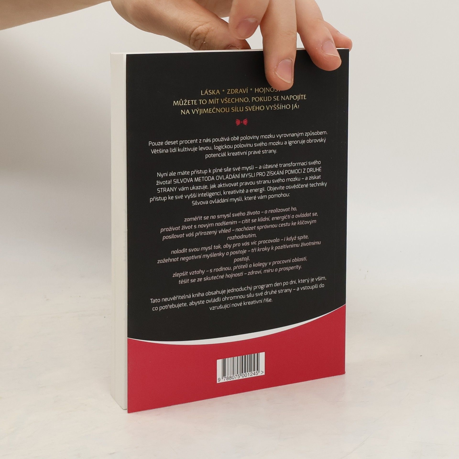 Použijte celou svou mysl pro nový rozměr tvůrčí síly. Pouze deset procent z nás používá obě poloviny mozku vyrovnaným způsobem. Většina lidí kultivuje levou, logickou polovinu svého mozku a ignoruje obrovský potenciál kreativní pravé strany. Nyní ale máte přístup k plné síle své mysli – a úžasné transformaci svého života! SILVOVA METODA OVLÁDÁNÍ MYSLI PRO ZÍSKÁNÍ POMOCI Z DRUHÉ STRANY vám ukazuje, jak aktivovat pravou stranu svého mozku – a získat přístup ke své vyšší inteligenci, kreativitě a energii. Objevíte osvědčené techniky Silvova ovládání mysli, které vám pomohou: - zaměřit se na smysl svého života – a realizovat ho, - prožívat život s novým nadšením – cítit se klidní, energičtí a ovládat se, - posilovat váš přirozený vhled – nacházet správnou cestu ke klíčovým rozhodnutím, - naladit svou mysl tak, aby pro vás víc pracovala – i když spíte, - zažehnat negativní myšlenky a postoje – tři kroky k pozitivnímu životnímu postoji, - zlepšit vztahy – s rodinou, přáteli a kolegy v prac