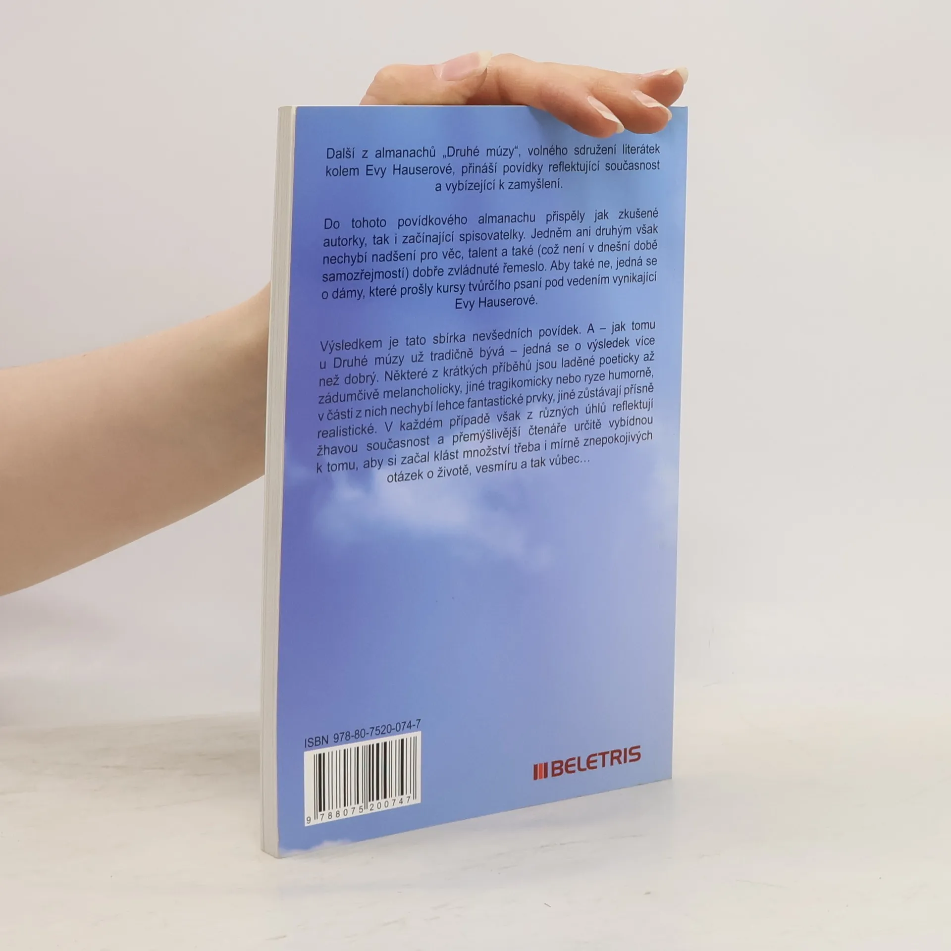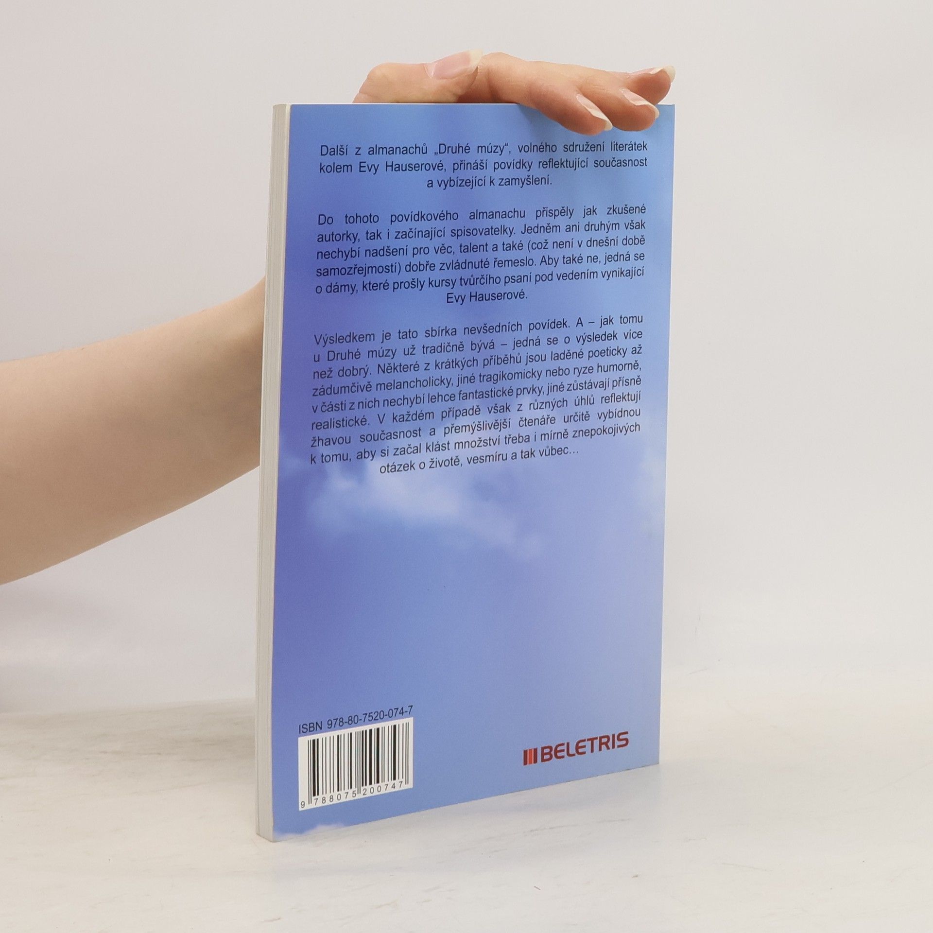 Další z almanachů „Druhé múzy“, volného sdružení literátek kolem Evy Hauserové, přináší povídky reflektující současnost a vybízející k zamyšlení. Klára Antošová, Helena Beránková, Ivana Beranová, Marie Henslová, Marta Jirková, Irina Kolaříková, Milena Koljenšič, Kateřina Mičkeová, Hana Raddová, Tereza Sedláková, Klára Smolová, Jana Trhlíková a Markéta Zachová. Do tohoto povídkového almanachu přispěly jak zkušené autorky, tak i začínající spisovatelky. Jedněm ani druhým však nechybí nadšení pro věc, talent a také (což není v dnešní době samozřejmostí) dobře zvládnuté řemeslo. Aby také ne, jedná se o dámy, které prošly kursy tvůrčího psaní pod vedením vynikající Evy Hauserové. Výsledkem je tato sbírka nevšedních povídek. A – jak tomu u Druhé múzy už tradičně bývá – jedná se o výsledek více než dobrý. Některé z krátkých příběhů jsou laděné poeticky až zádumčivě melancholicky, jiné tragikomicky nebo ryze humorně, v části z nich nechybí lehce fantastické prvky, jiné zůstávají přísně realistické. V každém případě však z různých úhlů reflektují žhavou současnost a přemýšlivější čtenáře určitě vybídnou k tomu, aby si začal klást množství třeba i mírně znepokojivých otázek o životě, vesmíru a tak vůbec.