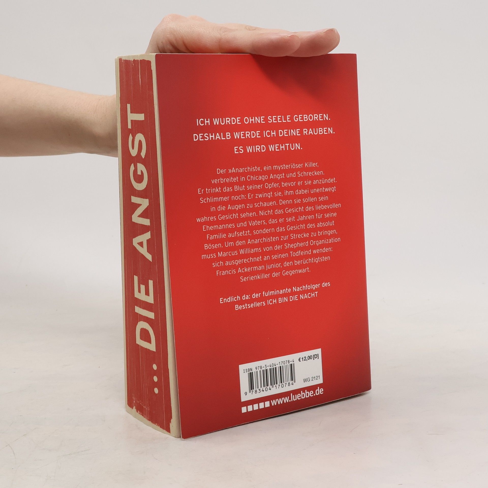 Der „Anarchist“, ein mysteriöser Killer, verbreitet in Chicago Angst und Schrecken. Er trinkt das Blut seiner Opfer, bevor er sie anzündet. Schlimmer noch: Er zwingt sie, ihm dabei unentwegt in die Augen zu schauen. Denn sie sollen sein wahres Gesicht sehen. Nicht das Gesicht des liebevollen Ehemannes und Vaters, das er seit Jahren für seine Familie aufsetzt, sondern das Gesicht des absolut Bösen. Um den Anarchisten zur Strecke zu bringen, muss Marcus Williams von der Shepherd Organization sich ausgerechnet an seinen Todfeind wenden: Francis Ackerman junior, den berüchtigsten Serienkiller der Gegenwart.