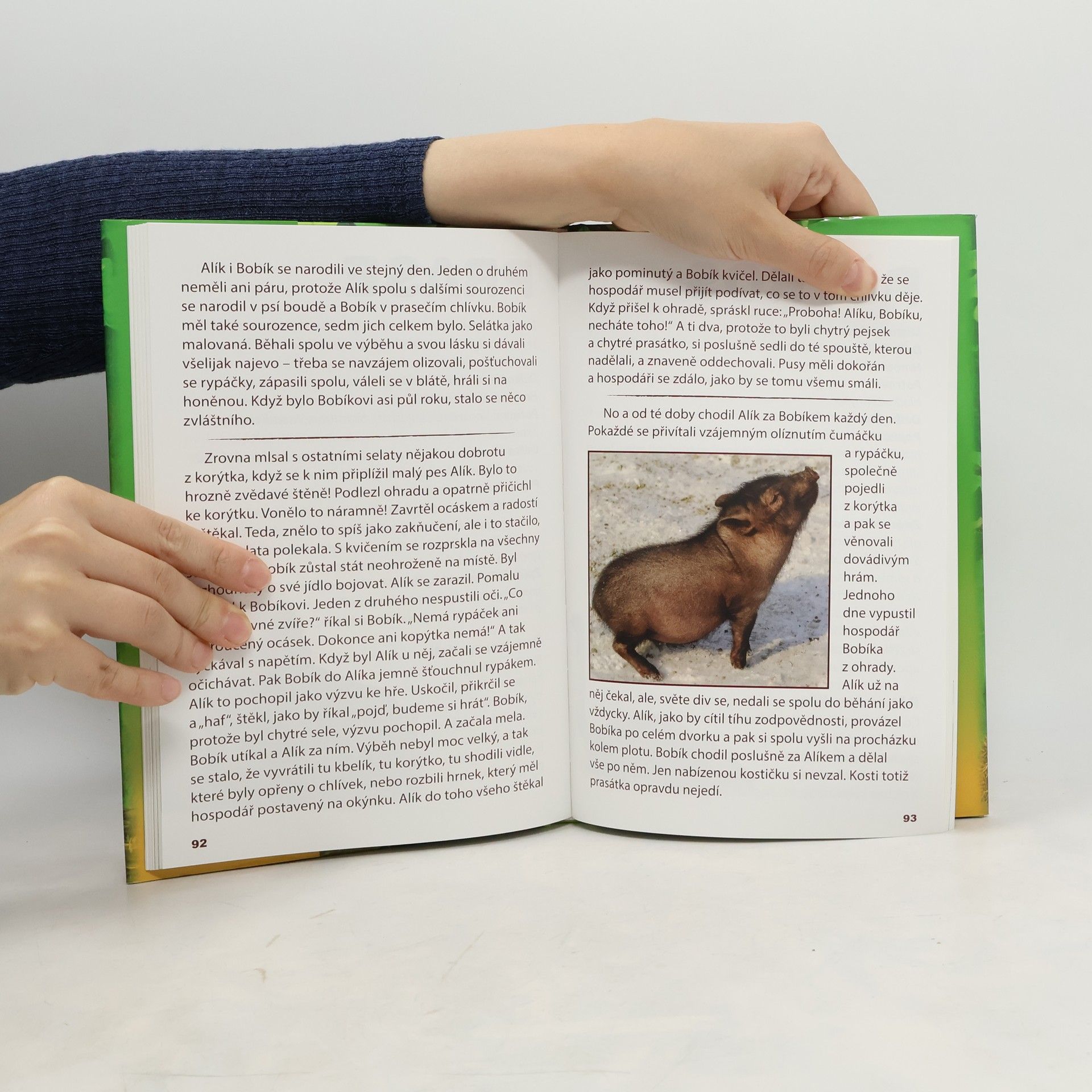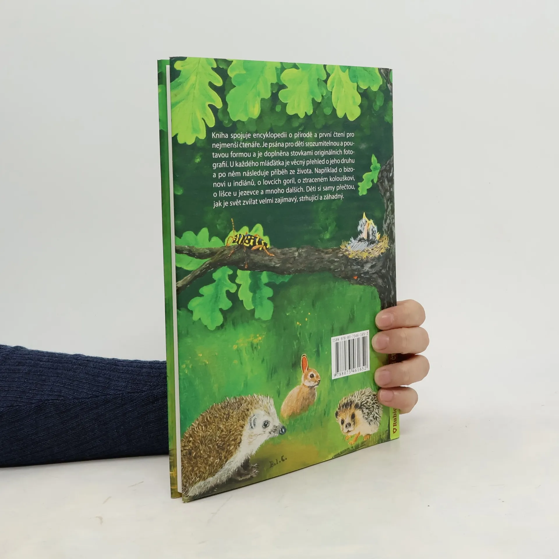 Kniha spojuje encyklopedii o přírodě a první čtení pro nejmenší čtenáře. Je psána pro děti srozumitelnou a poutavou formou a je doplněna stovkami originálních fotografií. U každého mláďátka je věcný přehled o jeho druhu a po něm následuje příběh ze života. Například o bizonovi u indiánů, o lovcích goril, o ztraceném kolouškovi, o lišce u jezevce a mnoho dalších. Děti si samy přečtou, jak je svět zvířat velmi zajímavý, strhující a záhadný.