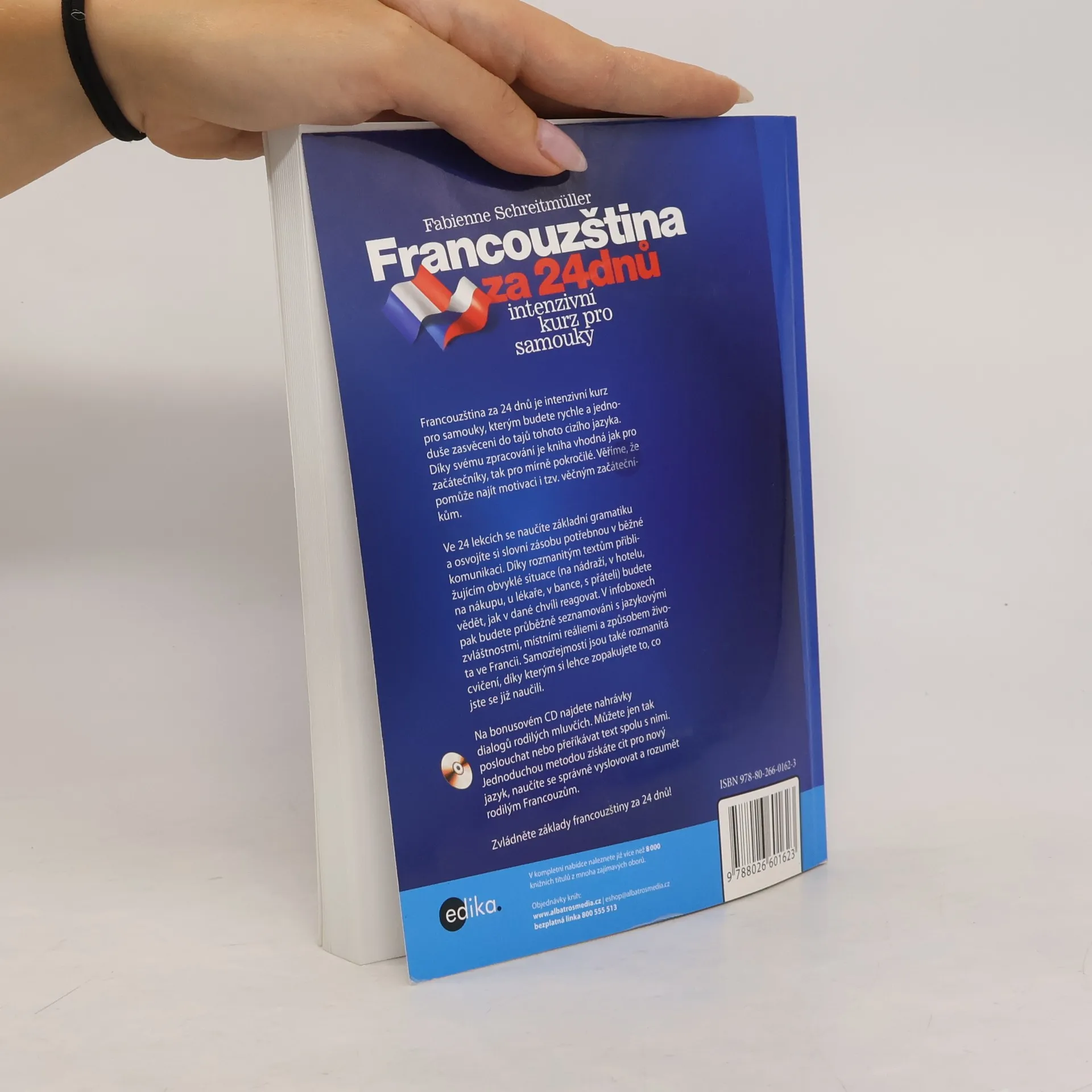Učebnice pro samouky jsou určeny pro mírně pokročilé. Zopakují s nimi ve 24 lekcích všechny podstatné tematické okruhy – setkání a pozdravy, rodina, nakupování, dům, oblékání, restaurace, dopravní prostředky, cestování, příroda, koníčky, zdraví, pošty a banky, telefonování, psaní korespondence ad. Každá z kapitol obsahuje krátké články se slovíčky, rozbor gramatiky a samozřejmě řadu cvičení s řešením na konci knihy. Na bonusovém CD najdete nahrávky dialogů rodilých mluvčích. Můžete jen tak poslouchat nebo přeříkávat text spolu s nimi. Jednoduchou metodou získáte cit pro nový jazyk, naučíte se správně vyslovovat a rozumět rodilým Francouzům. Zvládněte základy francouzštiny za 24 dnů! 2. vydání.