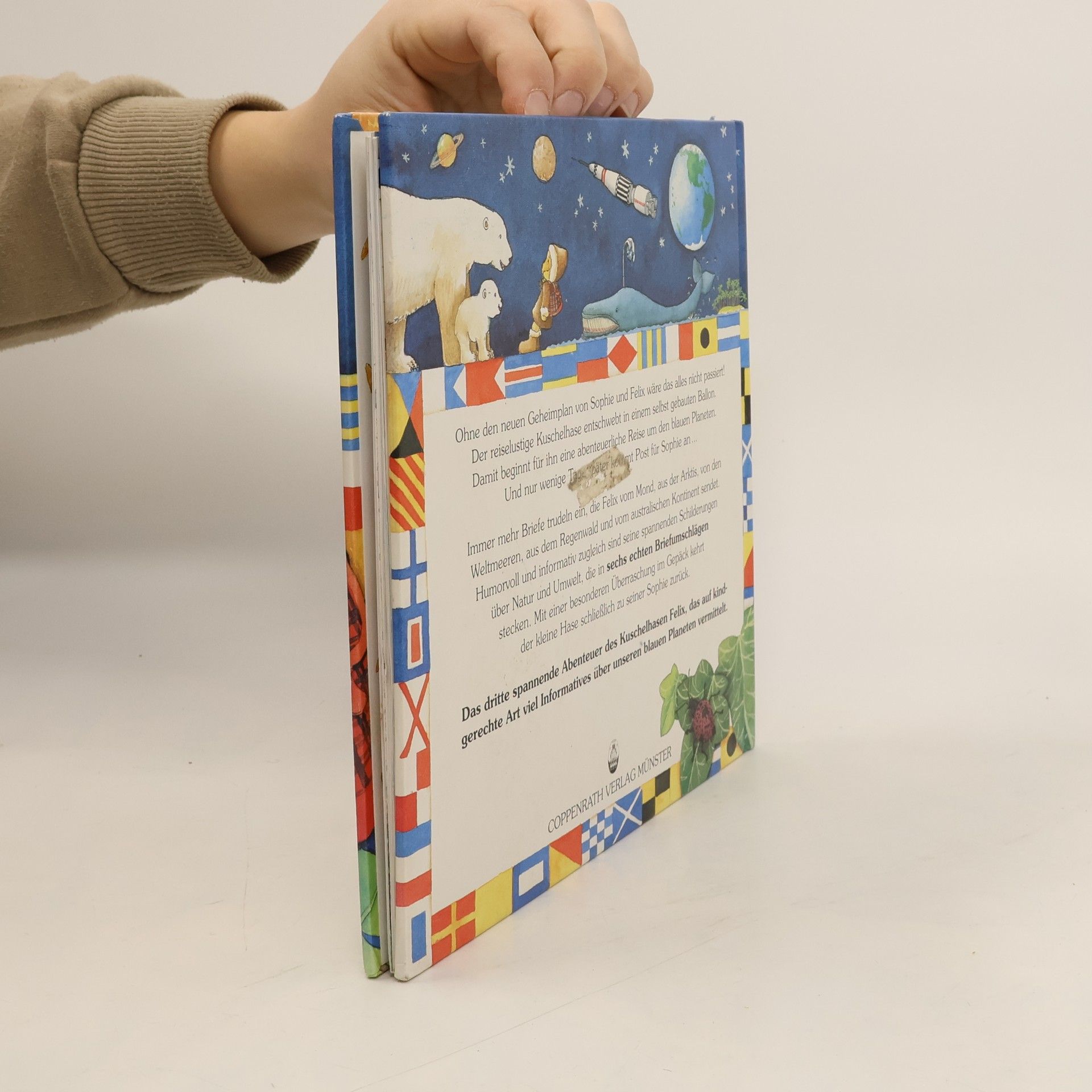 Ohne den Geheimplan von Sophie und Felix wäre das alles nicht passiert! Der reiselustige Kuschelhase entschwebt in einem selbst gebauten Ballon. Damit beginnt für ihn eine abenteuerliche Reise um den blauen Planeten. Und nur wenige Tage später kommt Post für Sophie an... Immer mehr Briefe trudeln ein, die Felix vom Mond, aus der Arktis, von den Weltmeeren, aus dem Regenwald und vom australischen Kontinent sendet. Humorvoll und informativ zugleich sind seine spannenden Schilderungen über Natur und Umwelt, die in sechs echten Briefumschlägen stecken. Das dritte spannende Abenteuer des Kuschelhasen Felix, das auf kindgerechte Art viel Informatives über unseren blauen Planeten vermittelt.