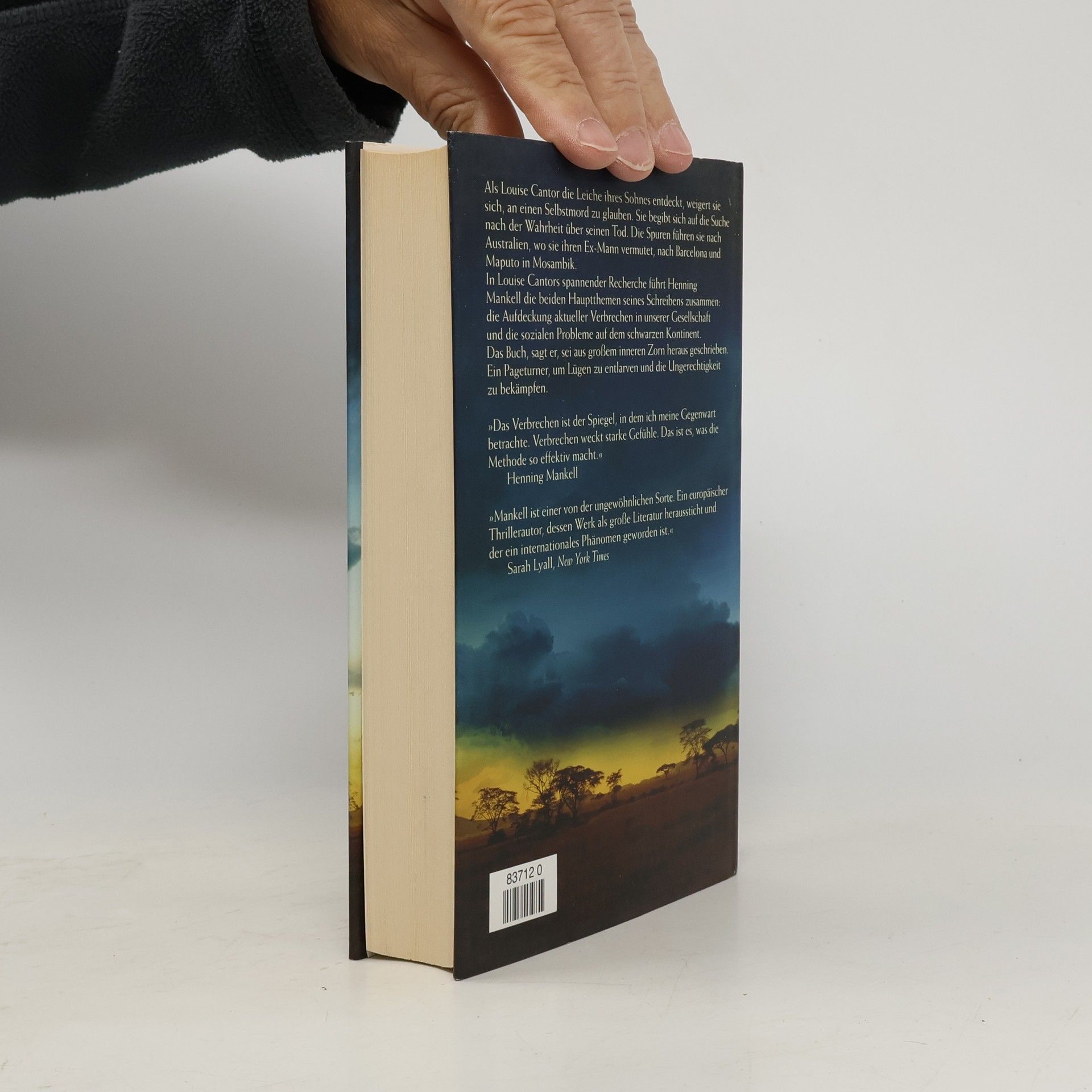 Als die Archäologin Louise Cantor von ihrer Ausgrabung in Griechenland zu einem Vortrag nach Schweden reist, will sie auch ihren 25-jährigen Sohn wiedersehen. Doch als sie die Wohnung in Stockholm betritt, liegt Henrik tot in seinem Bett. Die Polizei geht von Selbstmord aus, aber daran kann Louise nicht glauben. In dem Kleiderschrank ihres Sohnes findet sie eine Menge Material zu der Frage, warum das Hirn von John F. Kennedy nach der Obduktion spurlos verschwand. War Henrik einem kriminellen Geheimnis auf der Spur? Je mehr sie über sein Leben erfährt, umso klarer wird ihr, wie wenig sie ihren Sohn eigentlich gekannt hat. Auf der Suche nach Hinweisen, die seinen Tod erklären könnten, reist sie nach Australien zu ihrem verschwundenen Exmann und folgt Henriks Spuren über Barcelona nach Mosambik. Dort stößt sie auf ein Asyl für mittellose Aidskranke, in dem auch ihr Sohn gearbeitet hat und das von einem reichen weißen Mann aus scheinbar selbstlosen Gründen ins Leben gerufen wurde. Doch Louise ahnt bald, dass sich dahinter ein ungeheurer humanitärer Skandal verbirgt.
