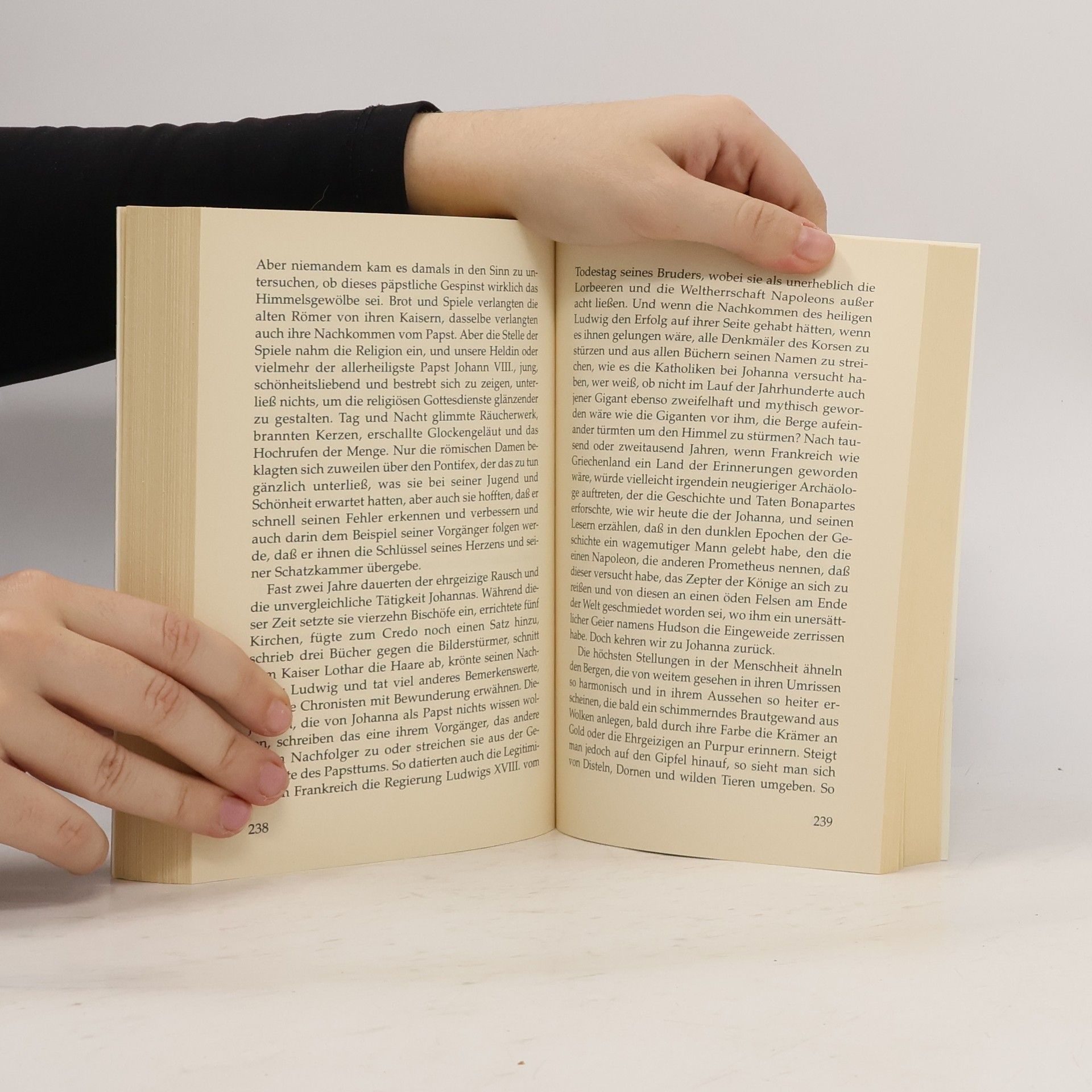 Die kleine Johanna von Ingelheim ist ein außergewöhnliches Mädchen. Sie spielt am liebsten mit Kruzifixen und Rosenkränzen, kann schon als Kleinkind das Vaterunser englisch, griechisch und lateinisch aufsagen und missioniert fleißig unter ihren Spielkameradinnen. Als junge Waise muß sie zwischen den beiden Möglichkeiten wählen, die einer Frau im 9. Jahrhundert offenstehen: Ehe oder Kloster. In kluger Voraussicht entscheidet sich Johanna für eine Kirchenlaufbahn. Sie lernt, Gänse in Fische zu verwandeln, liest die Schriften der Kirchenväter und verliebt sich in einen jungen Mönch, mit dem sie in Männerkleidern nach Fulda flieht. Aus Angst vor Entdeckung machen sie sich einige Jahre später auf den Weg über die Schweiz und Frankreich nach Griechenland, wo sich der schöne und gebildete "Mönch Johannes" bald einen Namen macht. Nach acht Jahren bricht Johanna von dort zu neuen Ufern auf, läßt ihren eifersüchtigen Liebhaber zurück und geht nach Rom, wo sie am Hof des Papstes Leo IV. weiter an ihrer Karriere arbeitet. Nach Leos Tod rückt die Papstkrone dann wirklich in greifbare Nähe. Emmanuel Rhoides hat mit seinem respektlos-heiteren historischen Roman über die Päpstin Johanna ein geistreiches Meisterwerk geschaffen, das zu den Klassikern der neugriechischen Literatur zählt. Phantasievoll entwirft Rhoides ein Sittengemälde des 9. Jahrhunderts und das lebhafte Porträt einer unbequemen Frau.§