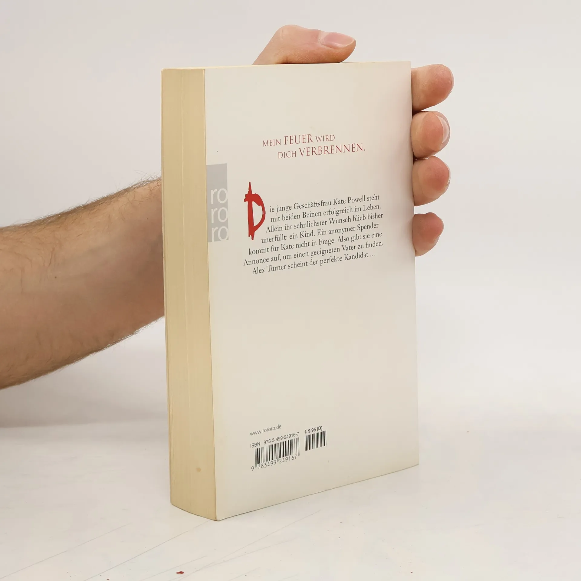 Mein Feuer wird dich verbrennen.Die junge Geschäftsfrau Kate Powell steht mit beiden Beinen erfolgreich im Leben. Allein ihr sehnlichster Wunsch blieb bisher unerfüllt: ein Kind. Ein anonymer Spender kommt für Kate nicht in Frage. Also gibt sie eine Annonce auf, um einen geeigneten Vater zu finden. Alex Turner scheint der perfekte Kandidat ...