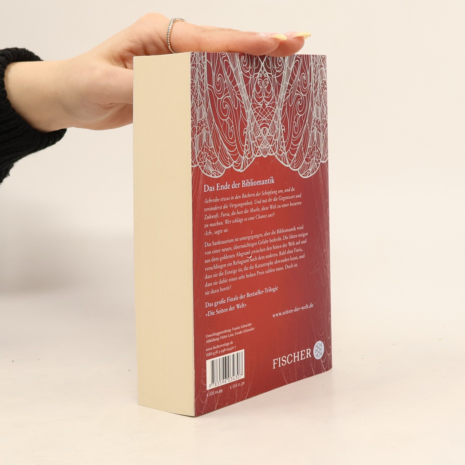 Der dritte Band der Bestseller-Trilogie Das Ende der Bibliomantik „Schreibe etwas in den Büchern der Schöpfung um, und du veränderst die Vergangenheit. Und mit ihr die Gegenwart und Zukunft. du hast die Macht, diese Welt zu einer besseren zu machen. Wer schlägt so eine Chance aus?“ „Ich“, sagte sie. Das Sanktuarium ist untergegangen, aber die Bibliomantik wird von einer neuen, übermächtigen Gefahr bedroht. Die Ideen steigen aus dem goldenen Abgrund zwischen den Seiten der Welt auf und verschlingen ein Refugium nach dem anderen. Bald ahnt Furia, dass sie die einzige ist, die die Katastrophe abwenden kann, und dass sie dafür einen sehr hohen Preis zahlen muss. Doch ist sie dazu bereit? Das große Finale der Bestseller-Trilogie ›Die Seiten der Welt‹ Sie waren in dieser Nacht nach London gekommen, um mehr über die rätselhafte Gefahr in der Tiefe herauszufinden. Beim Untergang des Sanktuariums hatten die Ideen Furia verschlungen – Furia Salamandra Faerfax, letzte Bibliomantin des Hauses Rosenkreutz, gerade mal sechzehn Jahre alt und seit Tagen verschollen. Möglicherweise tot. Nur dass Isis das nicht wahrhaben wollte. Sie würde alles tun, um Furia wiederzufinden oder Gewissheit über ihr Schicksal zu erlangen. Und ihr blieb nicht viel Zeit.