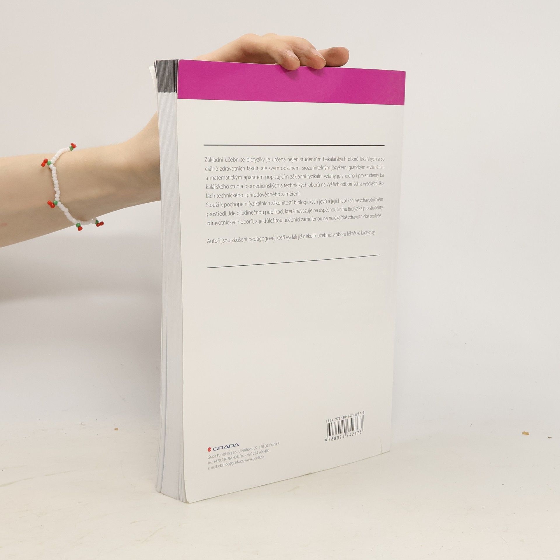 Základní učebnice v oboru je určena nejen studentům bakalářských oborů lékařských a sociálně zdravotních fakult, ale svým obsahem, srozumitelným jazykem, grafickým ztvárněním a matematickým aparátem popisujícím základní fyzikální vztahy je vhodná i pro studenty bakalářského studia biomedicínských a technických oborů, realizovaných na vyšších odborných a vysokých školách technického i přírodovědného zaměření. Studenti po jejím prostudování pochopí fyzikální zákonitosti biologických jevů a budou schopni je aplikovat ve zdravotnickém prostředí. Jde o jedinečnou publikaci, která nahradí úspěšnou knihu Biofyzika pro studenty zdravotnických oborů a bude důležitou učebnicí na současném trhu s odbornou literaturou, zaměřenou na nelékařské zdravotnické profese. Autoři jsou zkušení pedagogové, kteří vydali již několik učebnic v oboru lékařské biofyziky.