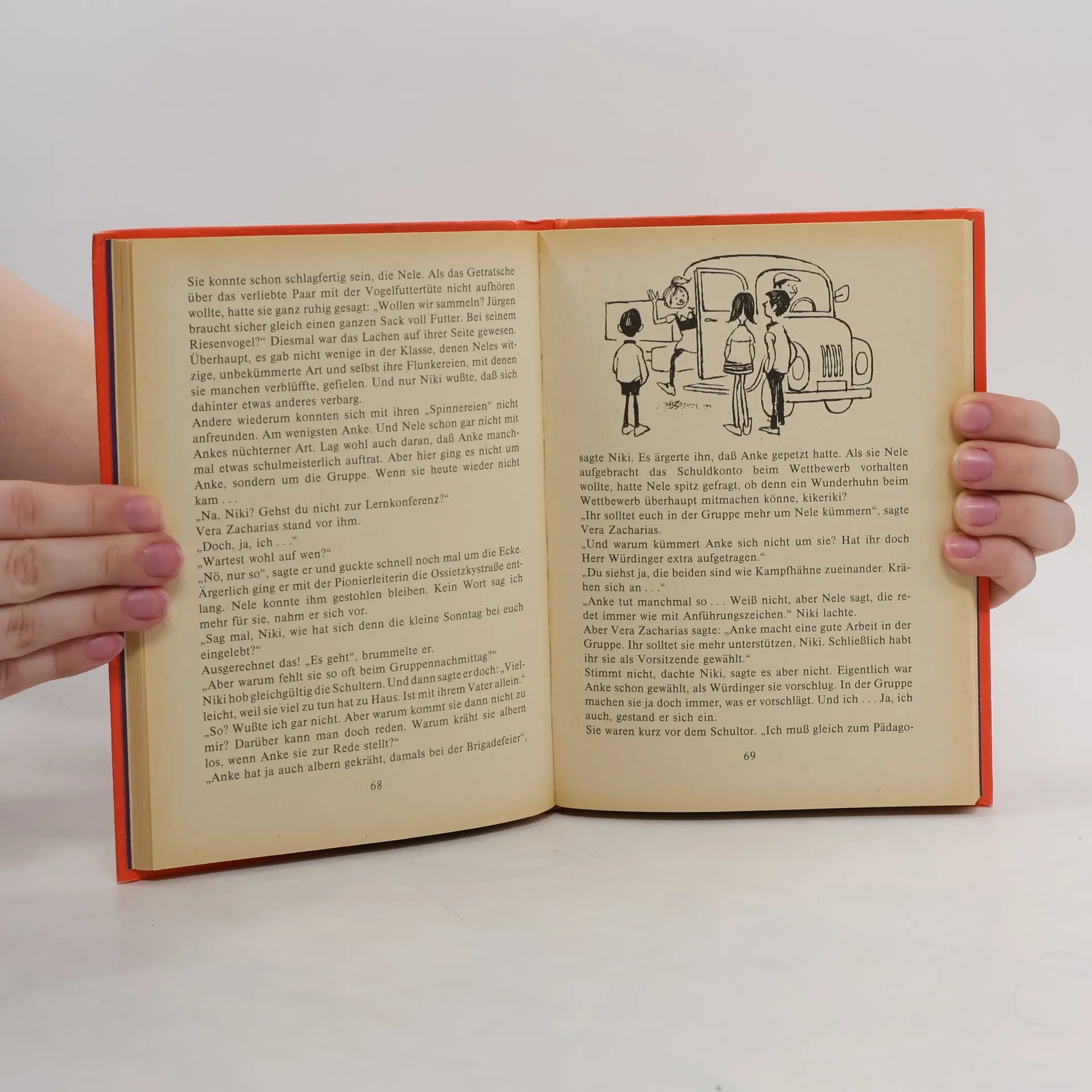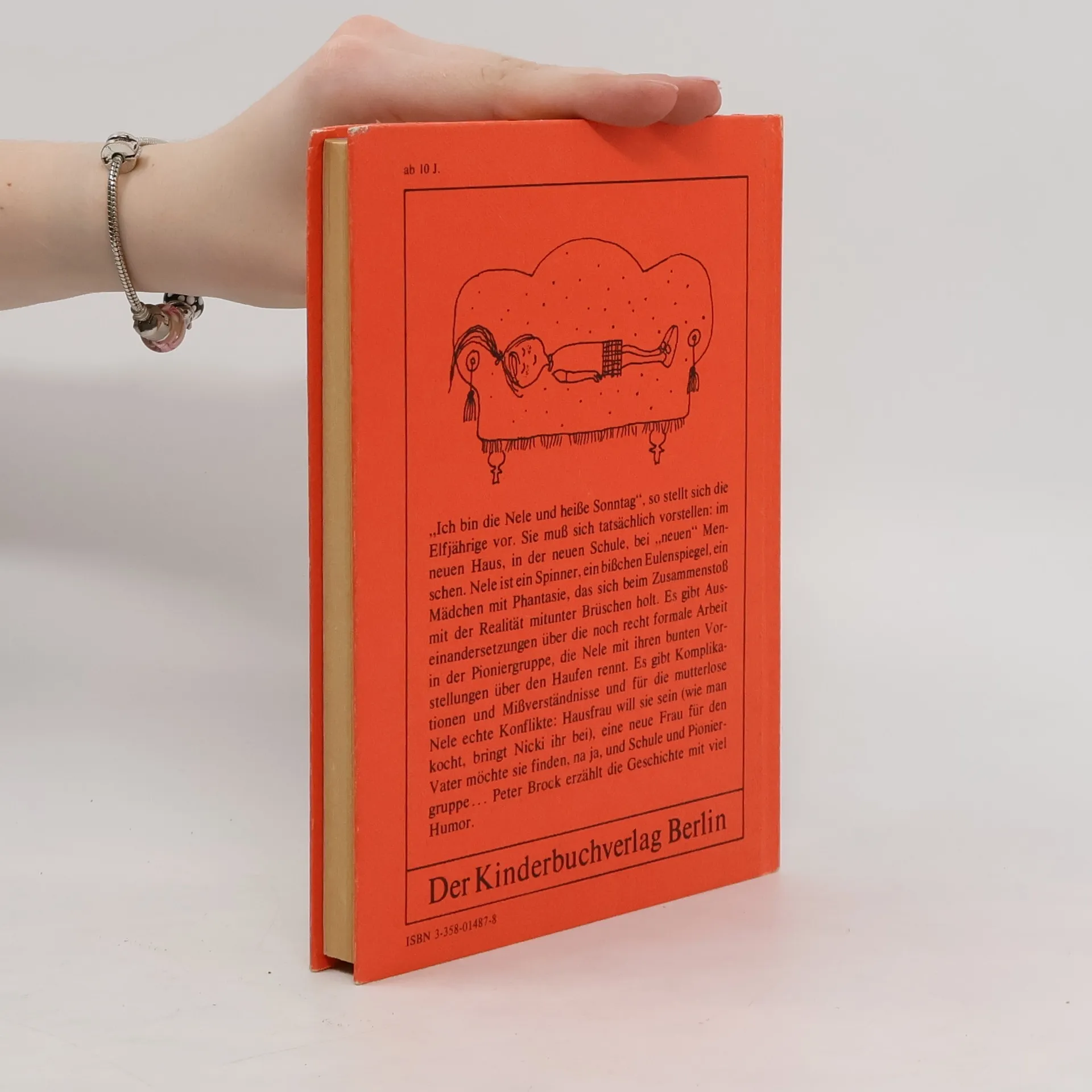 „Ich bin die Nele und heiße Sonntag“, so stell sich die Elfjährige vor. Sie muß sich tatsächlich vorstellen: im neuen Haus, in der neuen Schule, bei „neuen“ Menschen. Nele ist ein Spinner, ein bißchen Eulenspiegel, ein Mädchen mit Phantasie, das sich beim Zusammenstoß mit der Realität mitunter Brüschen holt. Es gibt Auseinandersetzungen über die nocht recht formale Arbeit in der Pioniergruppe, die Nele mit ihren bunten Vorstellungen über den Haufen rennt. Es gibt Komplikationen und Mißverständnisse und für die mutterlose Nele echte Konflikte: Hausfrau will sie sein (wie man kocht, bringt Nicki ihr bei), eine neue Frau für den Vater möchte sie finden, na ja, und die Schule und Pioniergruppe… Peter Brock erzählt die Geschichte mit viel Humor.