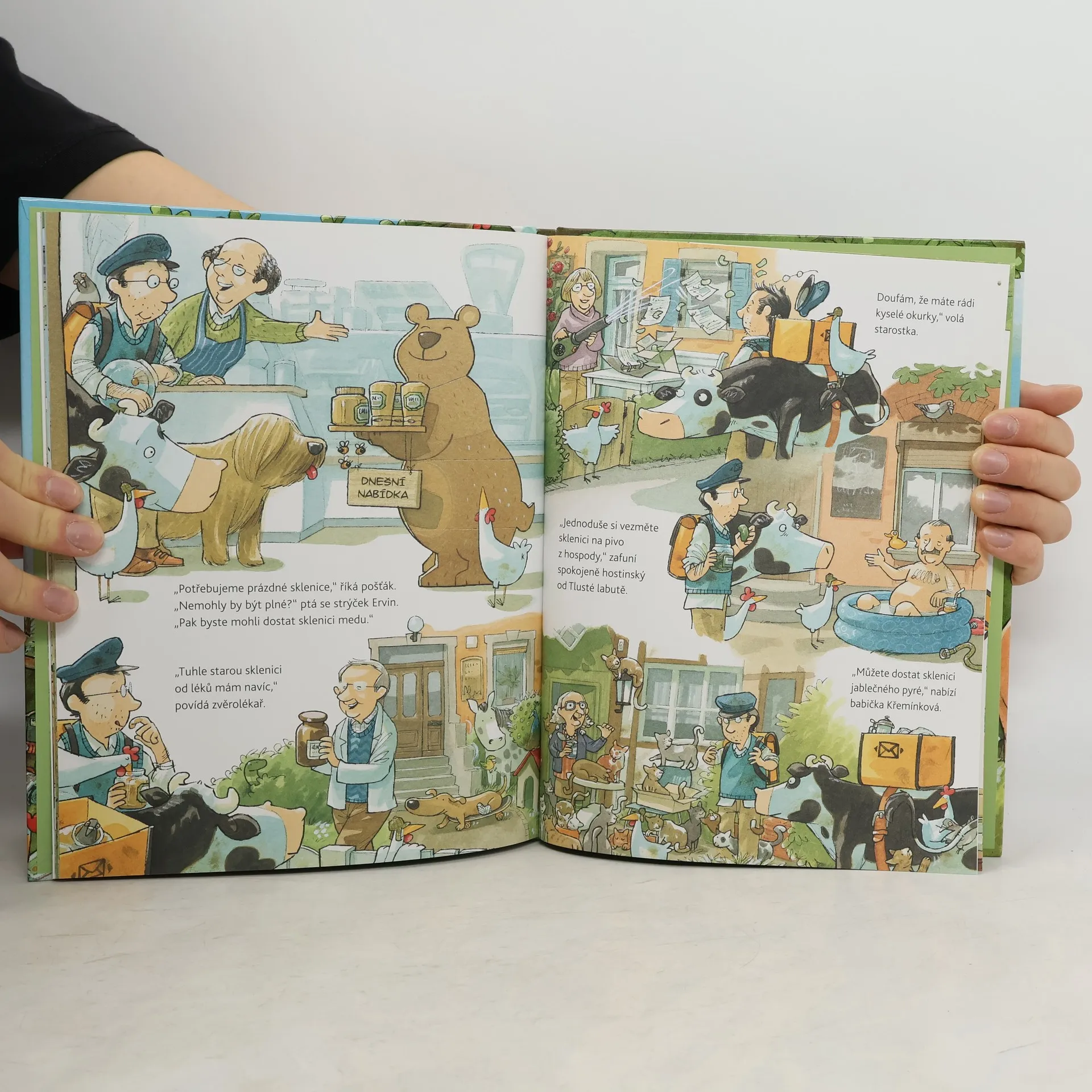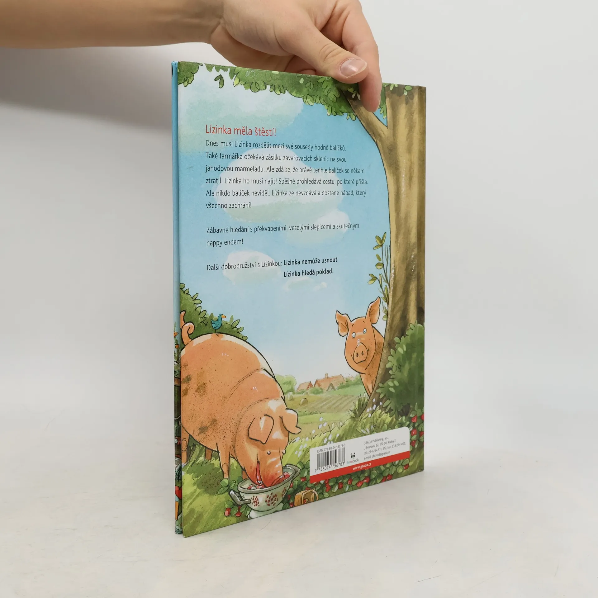 Lízinka musí důležitý balíček za každou cenu najít. Prohledá celou cestu, po které šla, ale nikdo balíček neviděl. Lízinka se nevzdává a dostane nápad, který vše zachrání. Napínavá zábava s množstvím hledání, překvapení, veselými slepicemi a opravdovým šťastným koncem. Lízinka je chytrá a podnikavá černobílá kravička, která žije na statku spolu s farmářkou prasátky, poníkem, kozou, spoustou slepic a kuřat. Všichni se přátelí s pošťákem, kterému Lízinka pomáhá s roznášením zásilek. Zvířátka mají pestrý život a každou chvíli se u nich něco semele. Kniha je plná dokonalých, výstižných a velmi vtipných ilustrací se spoustou detailů, které vás zabaví na dlouhou dobu.