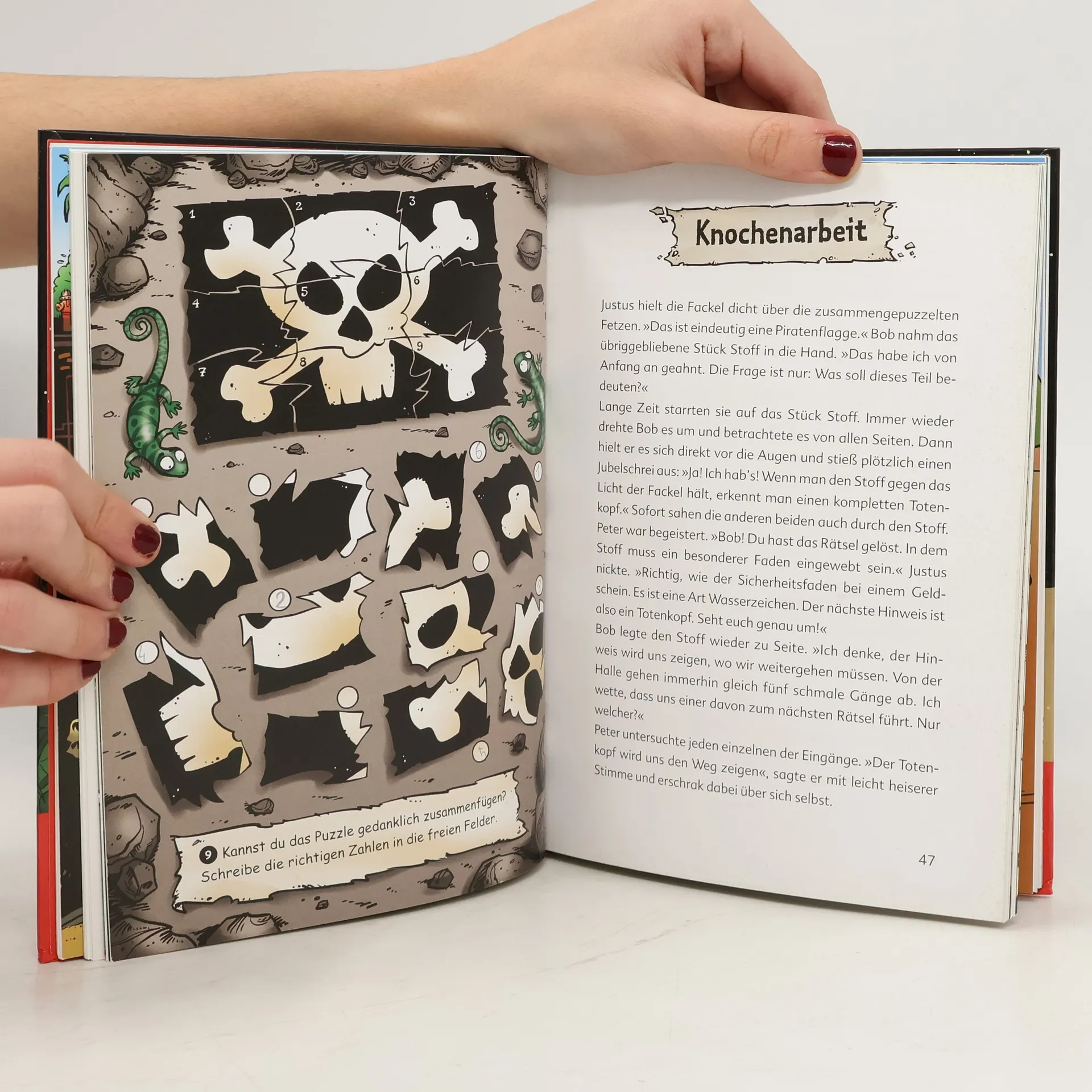 In Rocky Beach findet eine große Rätselmeisterschaft statt. Klar, dass auch Justus, Jonas und Bob mit dabei sind. Doch plötzlich taucht ein böser Geist auf und will verhindern, dass die drei Detektive Rätselkönige werden. Damit sie es dennoch schaffen, brauchen sie die Hilfe ihrer Leser: Jedes der 30 Rätsel ist an der passenden Stelle zum Mitraten abgebildet. Da heißt es: scharf nachdenken, kombinieren und gewinnen!