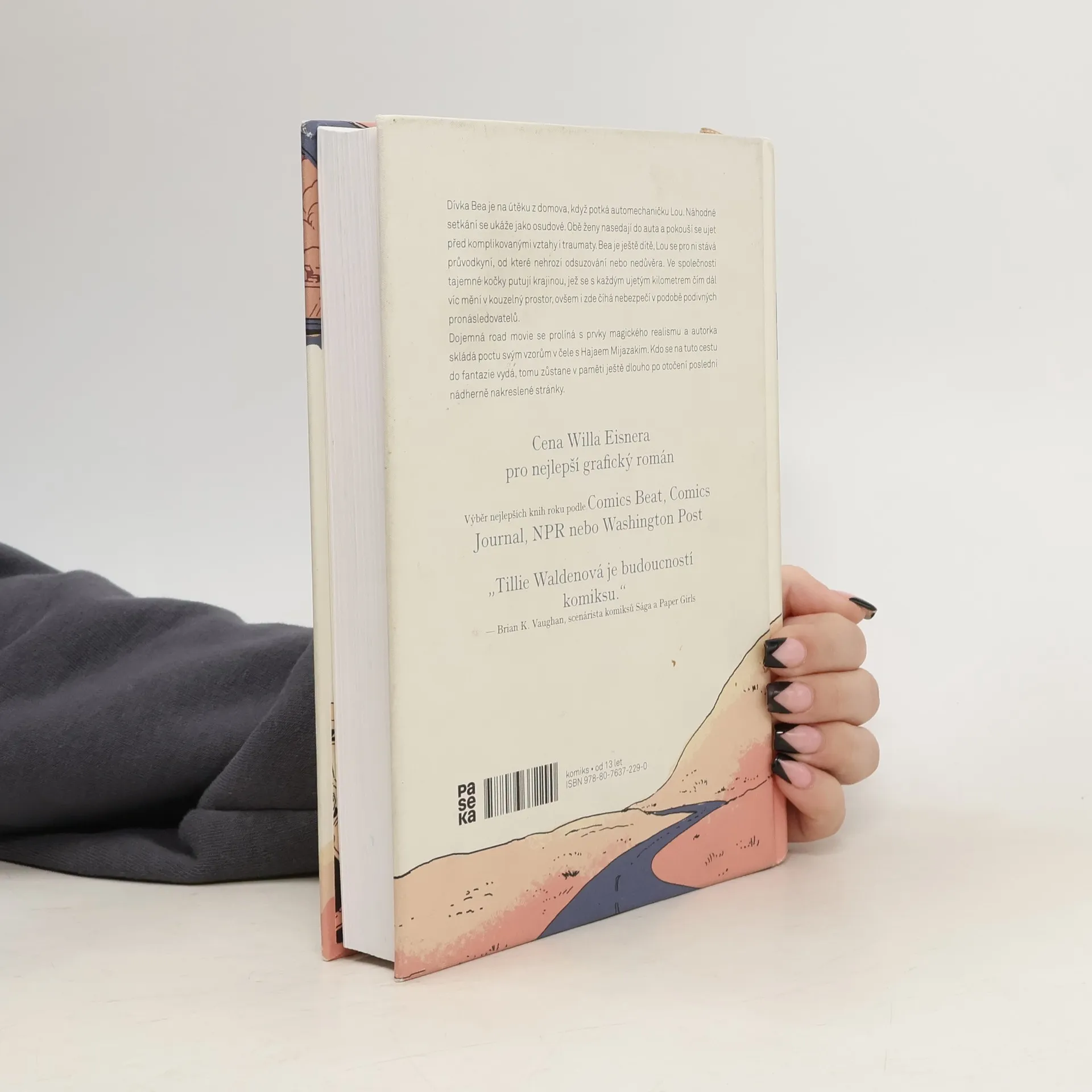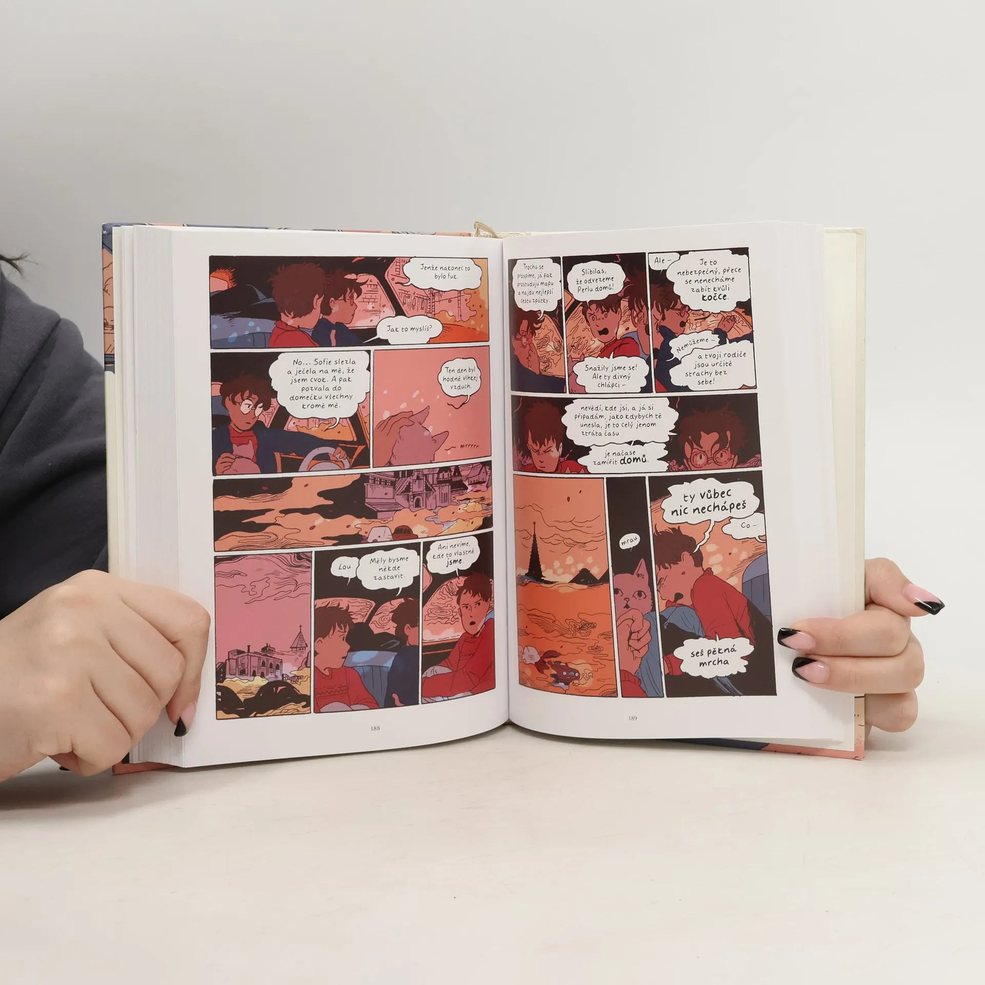 Dívka Bea je na útěku z domova, když potká automechaničku Lou. Náhodné setkání se ukáže jako osudové. Obě ženy nasedají do auta a pokouší se ujet před komplikovanými vztahy i traumaty. Bez ohledu na věkový rozdíl obě sdílejí podobné důvody k úniku. Bea je ještě dítě, Lou se pro ni stává průvodkyní, od které nehrozí odsuzování nebo nedůvěra. S tajemným kočičím společníkem putují krajinou, jež se s každým ujetým kilometrem čím dál víc mění v kouzelný prostor, ovšem i zde číhá nebezpečí v podobě podivných pronásledovatelů. Dojemná road movie se prolíná s prvky magického realismu a autorka skládá poctu svým vzorům v čele s Hajaem Mijazakim. Kdo se na tuto cestu do fantazie vydá, tomu zůstane v paměti ještě dlouho po otočení poslední nádherně nakreslené stránky.