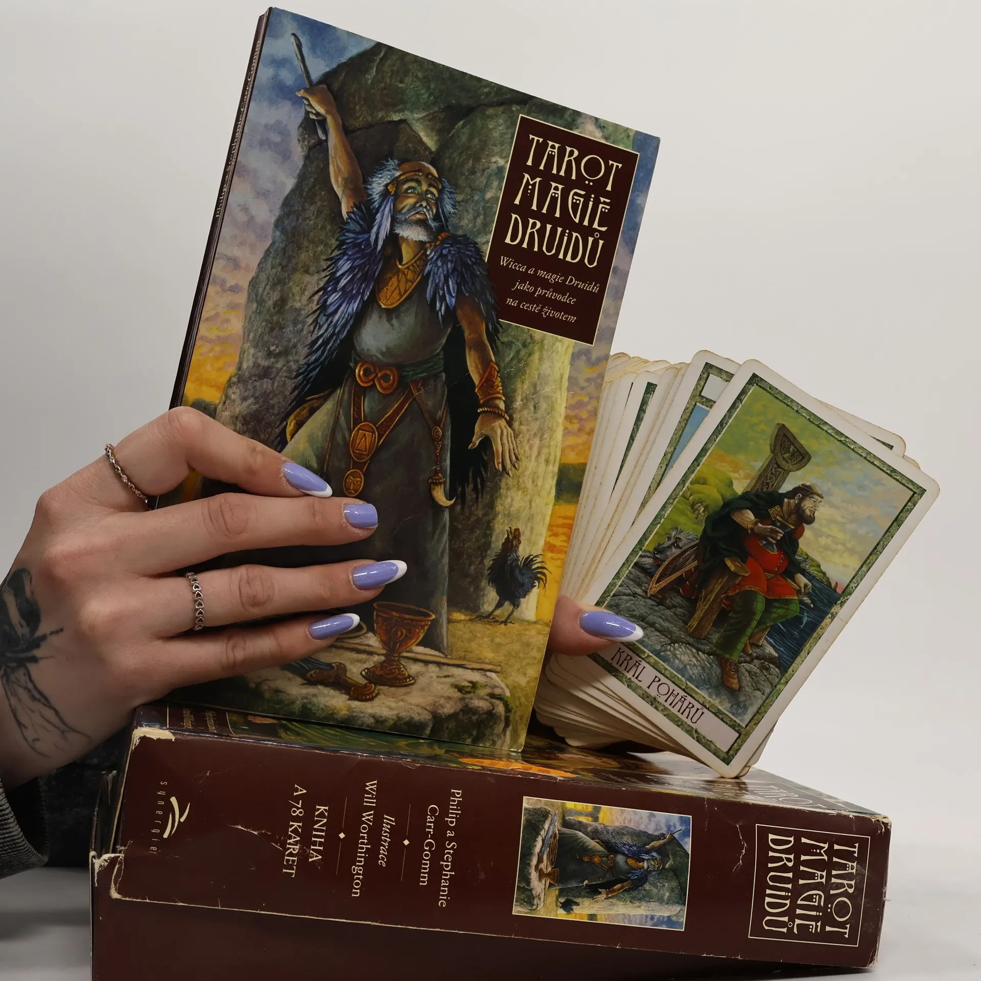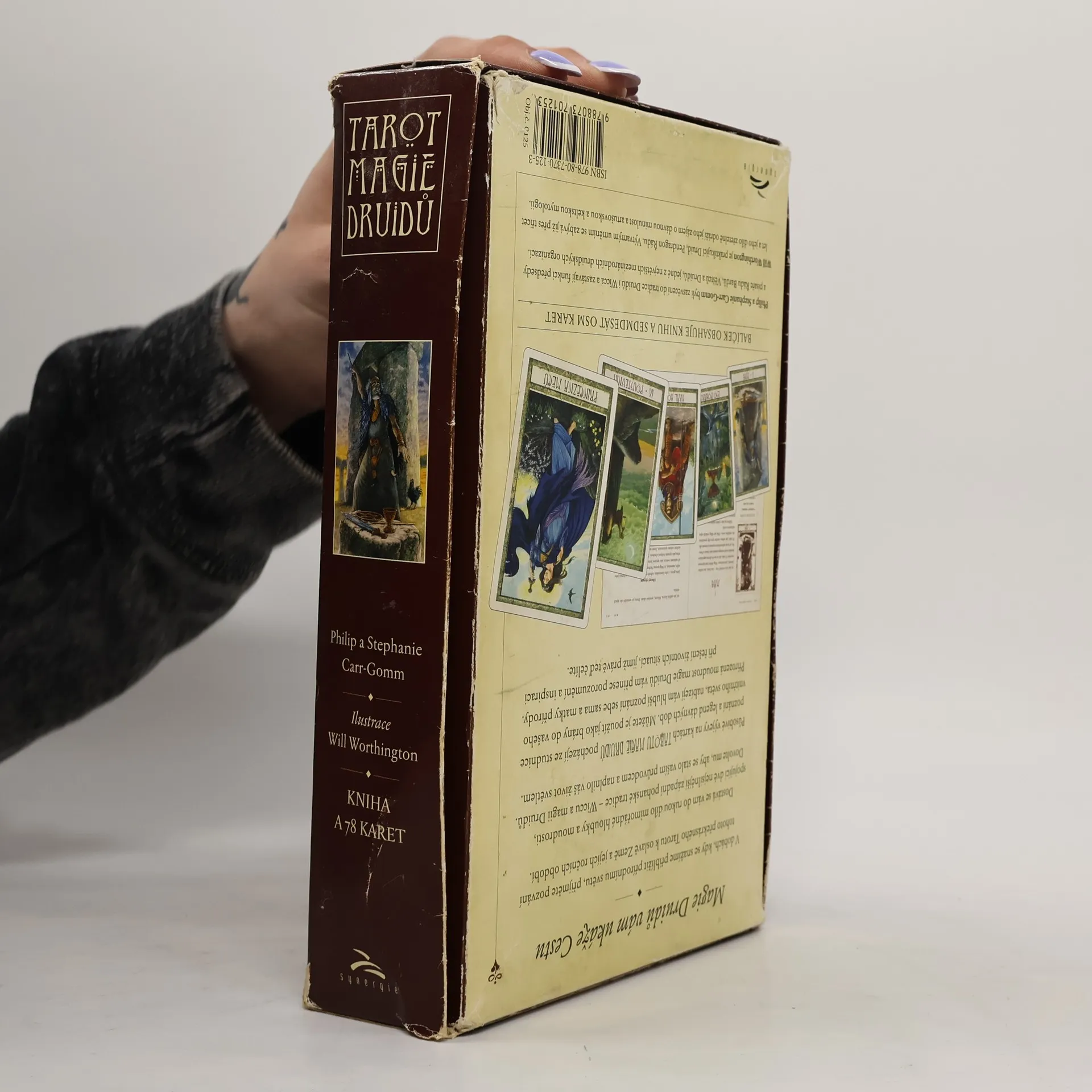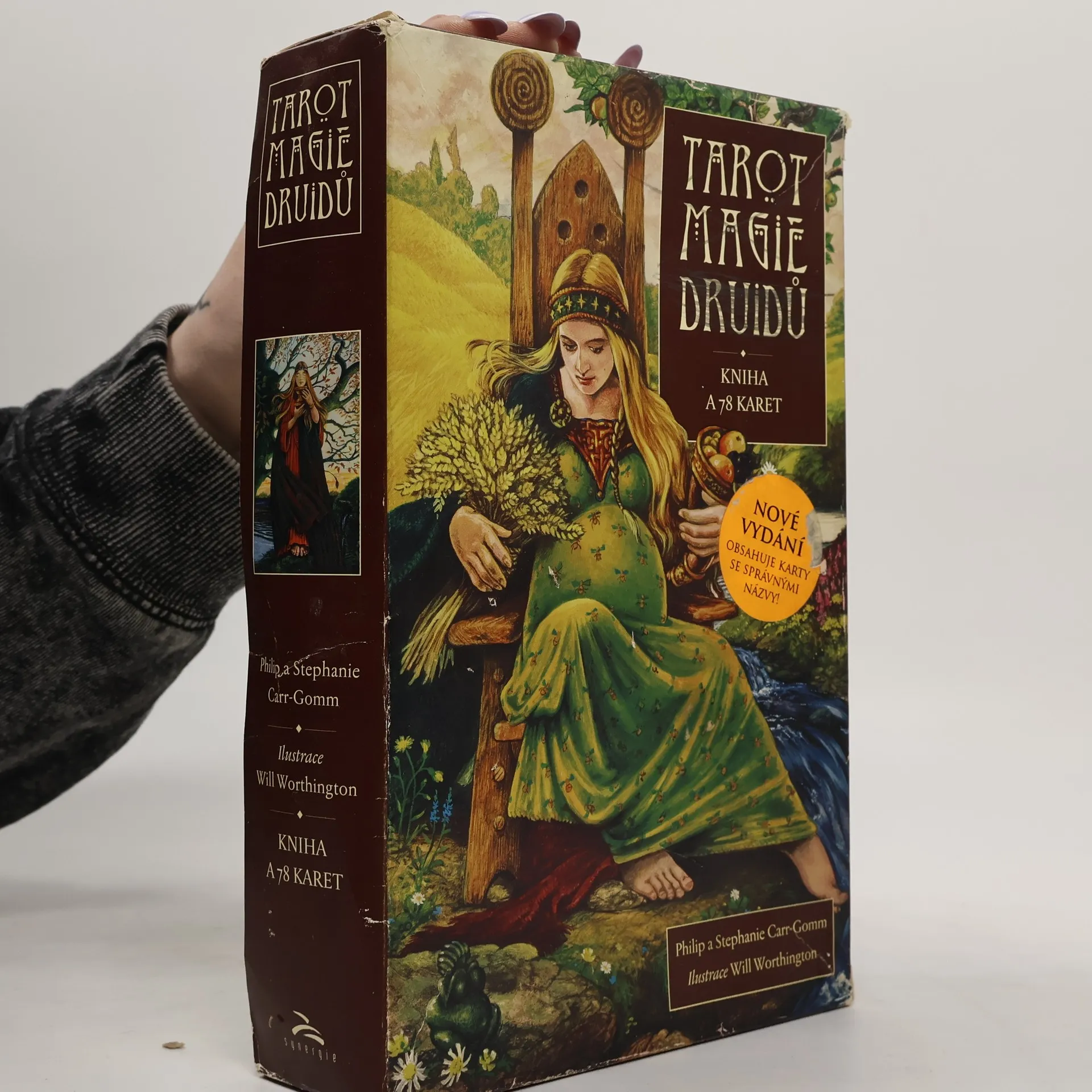V dobách, kdy se snažíme přiblížit přírodnímu světu, přijměte pozvání tohoto překrásného Tarotu k oslavě Země a jejích ročních období. Dostává se vám totiž do rukou dílo mimořádné hloubky a moudrosti, spojující dva nejsilnější západní pohanské tradice - Wiccu a magii Druidů. Dovolte mu, aby se stalo vaším průvodcem a naplnilo váš život světlem. Působivé výjevy na kartách Tarotu Magie Druidů pocházejí ze studnice poznání a legend dávných dob. Můžete je použít jako brány do vašeho vnitřního světa, nabízejí vám hlubší poznání sebe sama a matky přírody. Přirozená moudrost Magie Druidů vám přinese porozumění a inspiraci při řešení životních záležitostí jimž právě teď čelíte. Philip a Stephanie Carr-Gomm byli zasvěceni do tradice Druidů i Wicca a zastávají funkci předsedy a písaře Řádu Bardů, Věštců a Druidů, jedné z největších mezinárodních druidských organizací. Will Worthington je praktikující Druid, Pendragon Řádu. Výtvarným uměním se zabývá již přes třicet let a jeho dílo zřetelně odrážejí jeho zájem o dávnou minulost a artušovskou a keltskou mytologii.