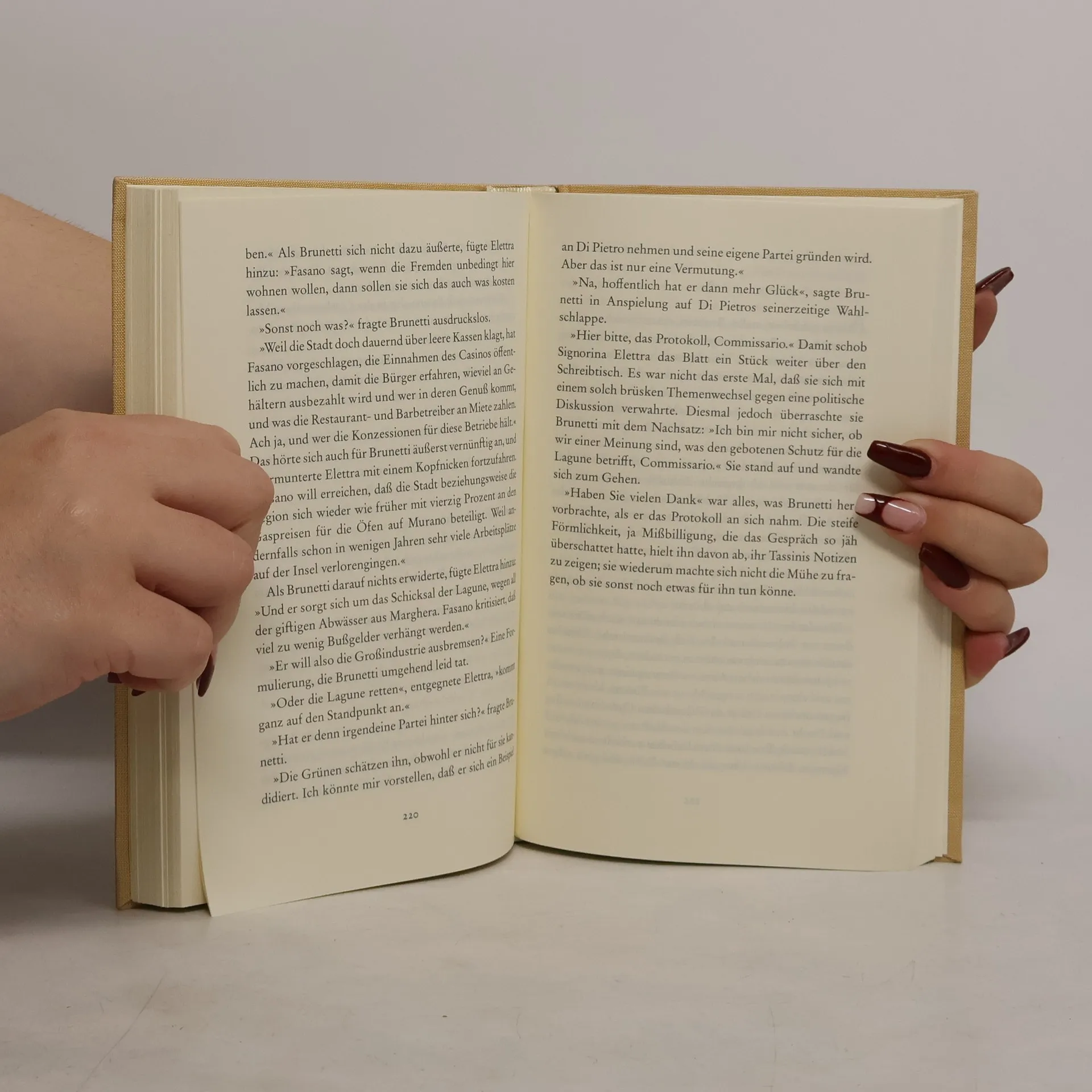 Tod vor dem Brennofen. Ist ein Familienzwist zwischen dem Fabrikbesitzer und seinem Schwiegersohn schuld? Oder mußte der Nachtwächter der Glasmanufaktur dafür büßen, daß er ein fanatischer Umweltschützer und Leser ist? In einer Ausgabe von Dantes Inferno entdeckt Brunetti die entscheidende Spur.