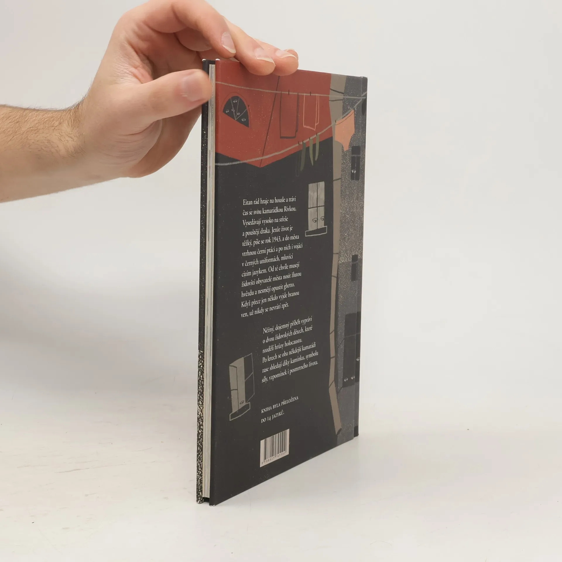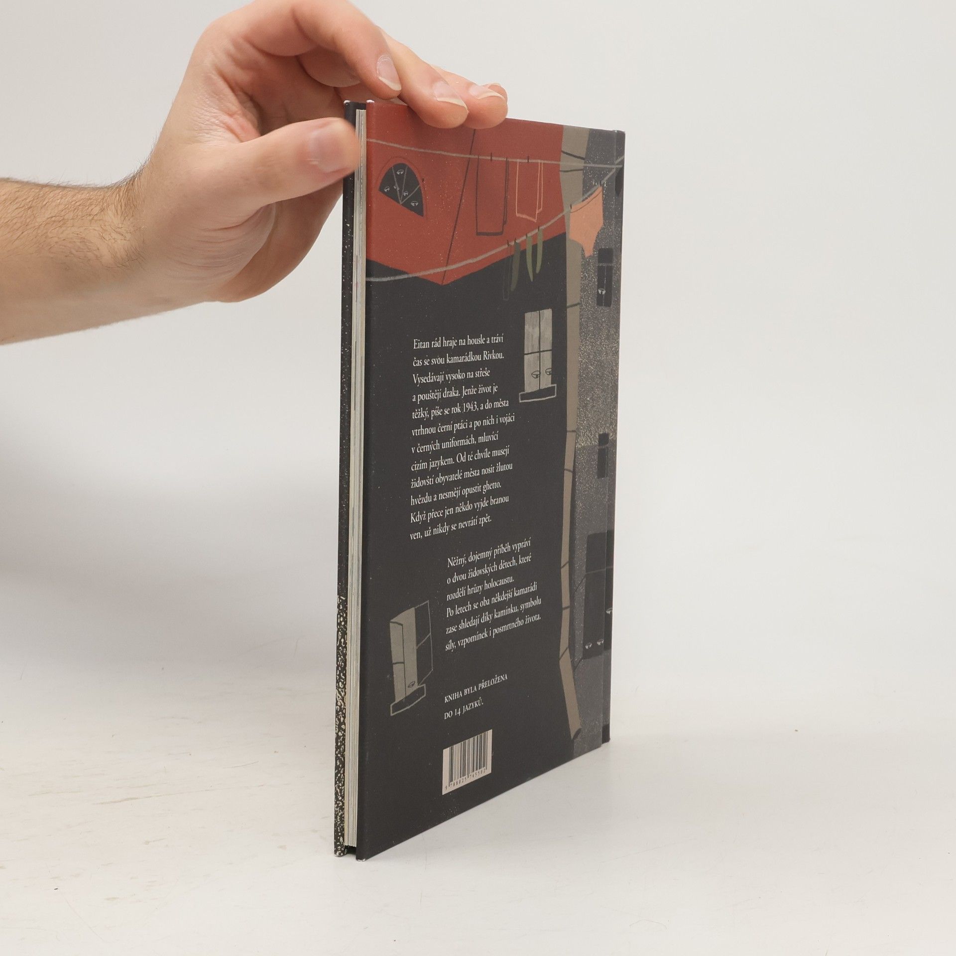Eitan rád hraje na housle a tráví čas se svou kamarádkou Rivkou. Vysedávají vysoko na střeše a pouštějí draka. Jenže život je těžký, píše se rok 1943, a do města vtrhnou černí ptáci a po nich i vojáci v černých uniformách, mluvící cizím jazykem. Od té chvíle musejí židovští obyvatelé města nosit žlutou hvězdu a nesmějí opustit ghetto. Když přece jen někdo vyjde branou ven, už nikdy se nevrátí zpět. Něžný, dojemný příběh vypráví o dvou židovských dětech, které rozdělí hrůzy holocaustu. Po letech se oba někdejší kamarádi zase shledají díky kamínku, symbolu síly, vzpomínek i posmrtného života. Kniha byla přeložena do 14 jazyků. Vydání knihy podpořil Litevský kulturní institut.