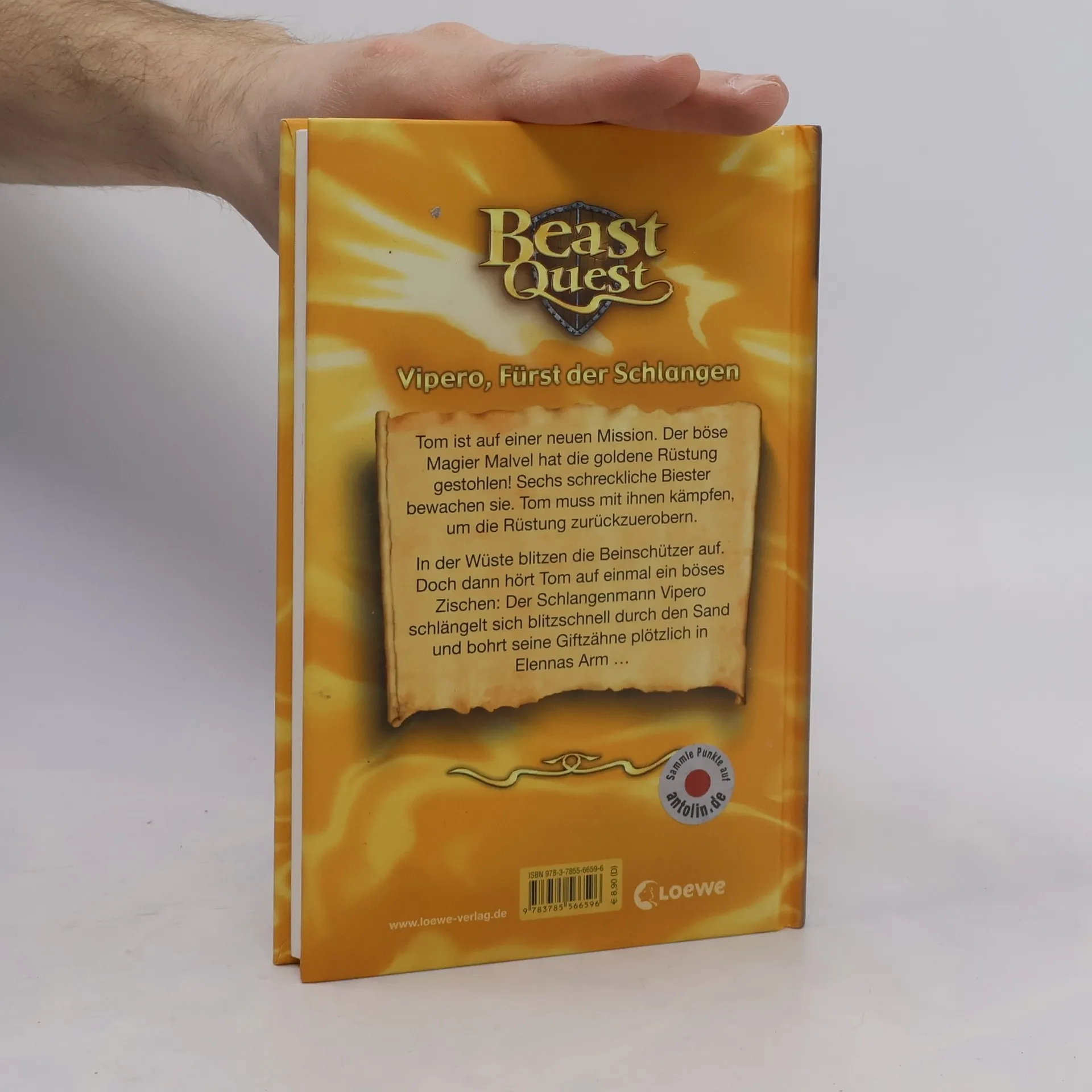 Das Buch ist bei deiner Buchhandlung vor Ort und bei vielen Online-Buchshops erhältlich! Tom ist auf einer neuen Mission. Der böse Magier Malvel hat die goldene Rüstung gestohlen! Sechs schreckliche Biester bewachen sie. Tom muss mit ihnen kämpfen, um die Rüstung zurückzuerobern. In der Wüste blitzen die Beinschützer auf. Doch dann hört Tom auf einmal ein böses Zischen: Der Schlangenmann Vipero schlängelt sich blitzschnell durch den Sand und bohrt seine Giftzähne plötzlich in Elennas Arm … Actionreiche Fantasy, spannende Missionen und gefährliche Biester! Die erfolgreiche Kinderbuchreihe mit zahlreichen Illustrationen ist besonders für Jungs ab 8 Jahren geeignet.
