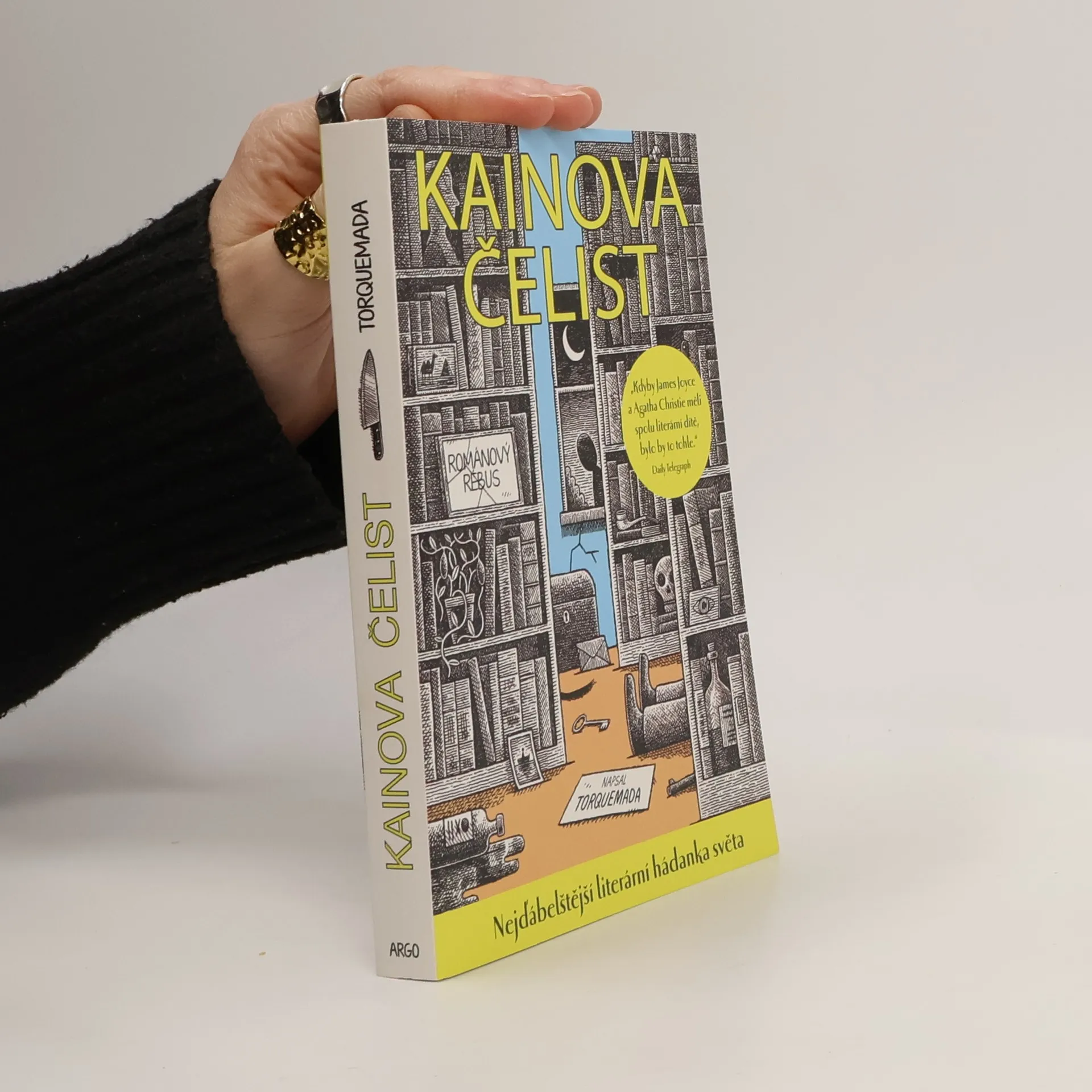 V roce 1934 vyšla v Anglii Torquemadova kniha hádanek. Jejím autorem byl Edward Powys Mathers (1892–1939), literárně vzdělaný a nesmírně sečtělý autor slovních rébusů a různých jazykových legrácek, který v roce 1924 začal pro list Observer vymýšlet kryptické křížovky. Čtenáři a luštitelé si stěžovali, že jeho hádanky jsou nevyluštitelné, ovšem když už se někomu podařilo záhadu rozplést, radost byla o to větší. Posledních sto stran Torquemadovy knihy hádanek zaujímala právě detektivka Kainova čelist, soubor očíslovaných lístků, který je třeba podle nápovědy na každém z nich seřadit do celku, který dává smysl. Větší šanci na rozpoznání, kdo a kdy tu zavraždil koho, má člověk s literárním rozhledem – Mathers byl výjimečným znalcem anglické poezie a prózy a mimo jiné přeložil do angličtiny Pohádky tisíce a jedné noci. Dnešní čtenář má oproti těm prvním před téměř sto lety výhodu internetu. Může nejen hledat verše a literární odkazy, které neznal, ale dokonce se může dobrat i správného výsledku detektivního pátrání. To by však nebyla žádná hra! A Kainova čelist hra je – sofistikovaná, vtipná a ďábelsky rozčilující. Ono však není nutné seřadit správně úplně všechny lístky. Kdo jich dá ve správném pořadí za sebe třicet, je dobrý. Kdo padesát, je hodně dobrý. O stovce si mohou zdát jen ti nejlepší a nejtrpělivější. Složíte si detektivku ve správném pořadí?