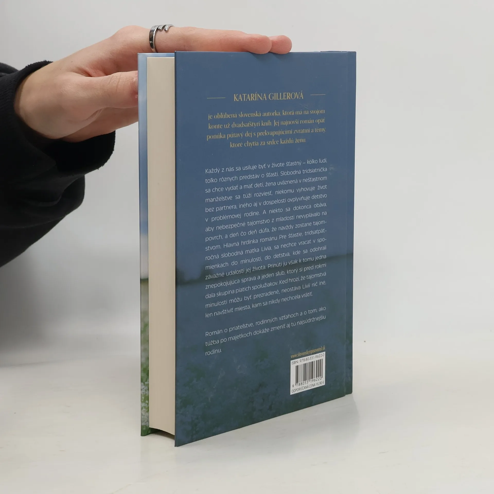 Katarína Gillerová je obľúbená slovenská autorka, ktorá má na svojom konte už dvadsaťštyri kníh. Jej najnovší román opäť ponúka pútavý dej s prekvapujúcimi zvratmi a témy, ktoré chytia za srdce každú ženu. Každý z nás sa usiluje byť v živote šťastný – koľko ľudí, toľko rôznych predstáv o šťastí. Slobodná tridsiatnička sa chce vydať a mať deti, žena uväznená v nešťastnom manželstve sa túži rozviesť, niekomu vyhovuje život bez partnera, iného aj v dospelosti ovplyvňuje detstvo v problémovej rodine. A niekto sa dokonca obáva, aby nebezpečné tajomstvo z mladosti nevyplávalo na povrch, a deň čo deň dúfa, že navždy zostane tajomstvom. Hlavná hrdinka románu Pre šťastie, tridsaťpäťročná slobodná matka Lívia, sa nechce vracať v spomienkach do minulosti, do detstva, kde sa odohrali závažné udalosti jej života. Prinúti ju však k tomu jedna znepokojujúca správa a jeden sľub, ktorý si pred rokmi dala skupina piatich spolužiakov. Keď hrozí, že tajomstvá minulosti môžu byť prezradené, neostáva Lívií nič iné, len navštíviť miesta, kam sa nikdy nechcela vrátiť. Román o priateľstve, rodinných vzťahoch a o tom, ako túžba po majetkoch dokáže zmeniť aj tú najsúdržnejšiu rodinu.