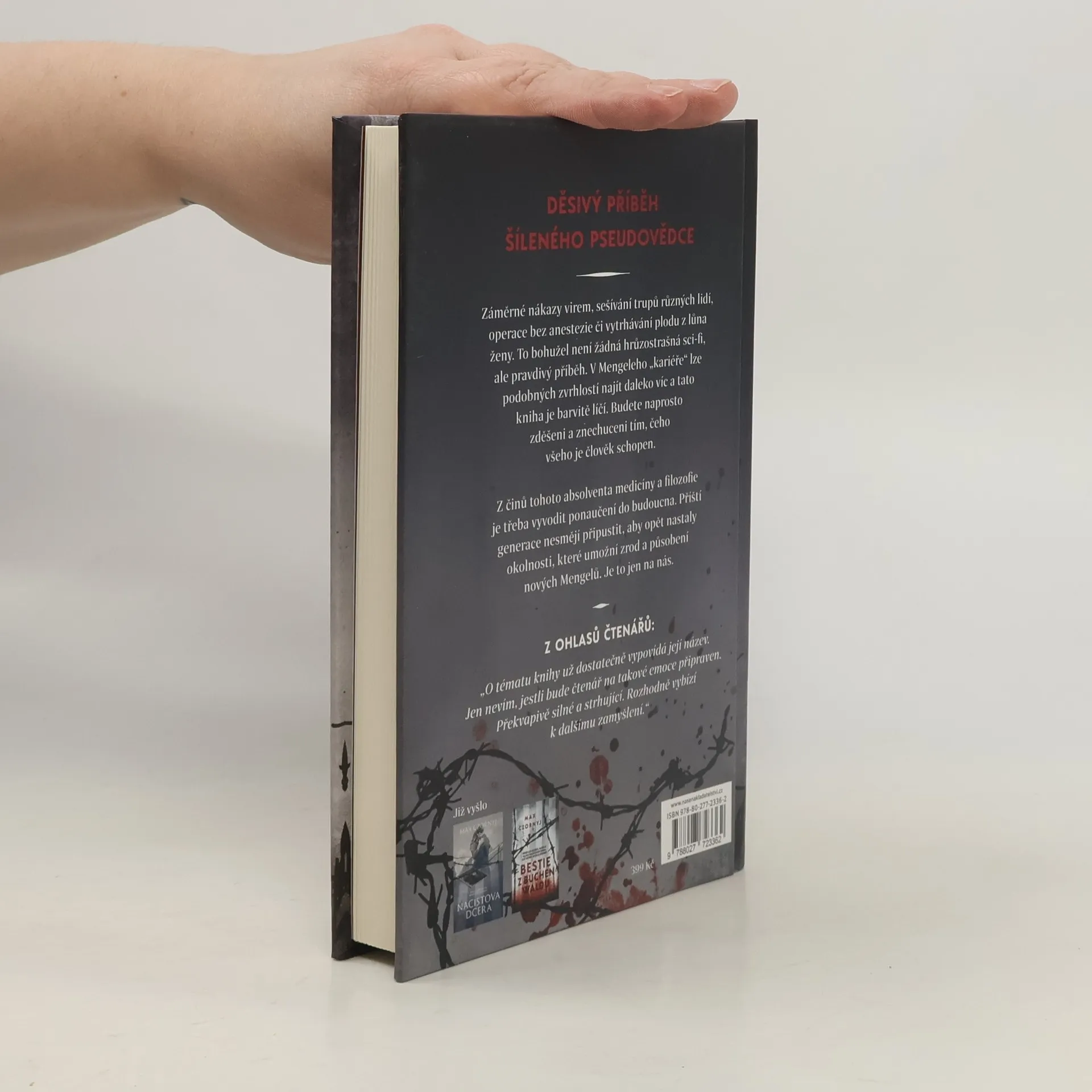 Předkládáme vám příběh Josefa Mengeleho, neblaze proslulého Anděla smrti z koncentračního tábora Osvětim. Události popisované v této knize jsou založeny na skutečných svědectvích. Jsou tak důkazem toho, že pravda bývá často mnohem děsivější než ta nejpromyšlenější fikce. Josef Mengele byl nejen válečný zločinec, ale také šílenstvím posedlý rádoby badatel, který vězně z koncentračních táborů využíval jako materiál pro své bizarní pseudovědecké výzkumy. Záměrná nákaza virem, sešívání trupů více lidí, operace bez anestezie či vytrhávání plodu z lůna ženy. To bohužel není žádné hrůzostrašné sci-fi, ale pravdivý příběh. A navíc to není všechno – v Mengeleho „kariéře“ lze podobných zvrhlostí najít mnohem víc a tato kniha je zachycuje. Budete naprosto zděšeni a znechuceni tím, čeho všeho je vůbec člověk schopen. Z činů tohoto lékaře a filozofa (či snad přesněji absolventa studia medicíny a filozofie) je třeba vyvodit určitá ponaučení do budoucna. To hlavní je udělat vše pro to, aby se dějiny neopakovaly. Příští generace nesmějí připustit, aby doba zvlčila natolik, že opět nastanou příznivé okolnosti pro zrod nových Mengelů. Je to jen na nás.