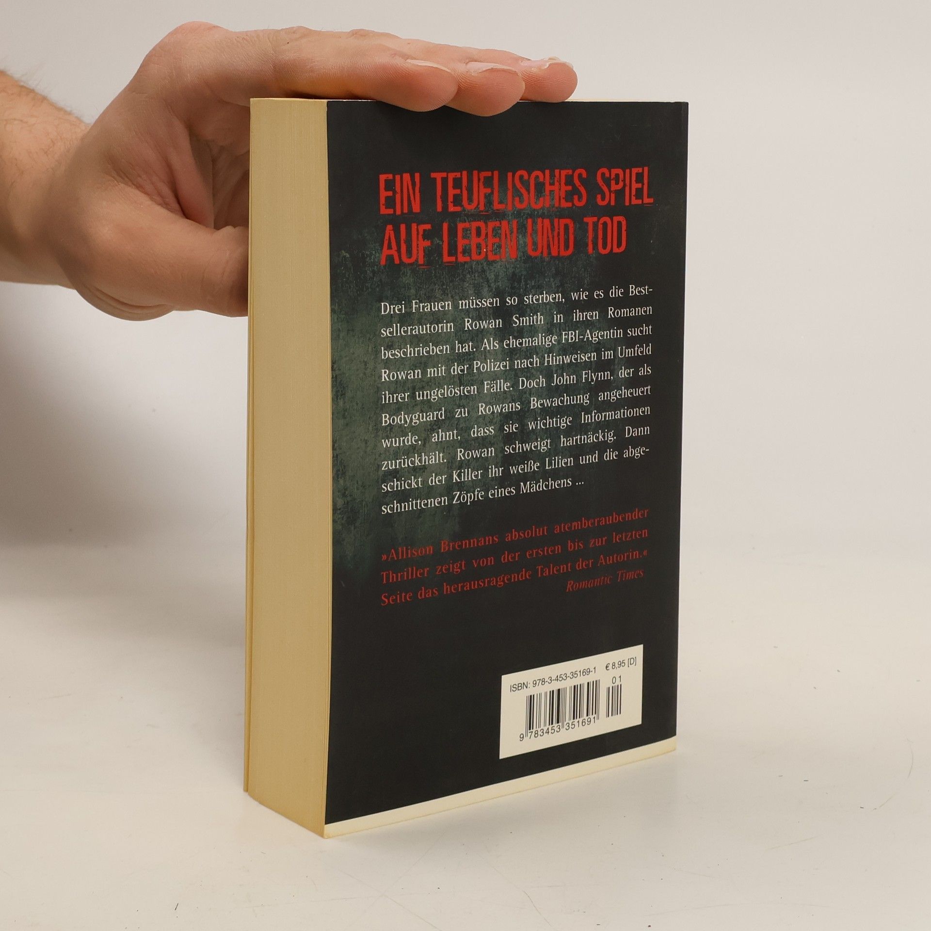 Erbarmungslose Spannung, die Sie um Ihren Schlaf bringen wird! Drei tote Frauen lassen für die Bestsellerautorin Rowan Smith einen Alptraum wahr werden. Denn die Opfer dieser Mordserie mussten so sterben, wie sie es in ihren Romanen beschrieben hat. Als ehemalige FBI-Agentin sucht Rowan mit der Polizei nach Hinweisen im Umfeld ihrer ungelösten Fälle. Doch John Flynn, der als Bodyguard zu Rowans Bewachung angeheuert wurde, ahnt, dass sie wichtige Informationen zurückhält. Rowan schweigt hartnäckig. Dann schickt der Killer ihr weiße Lilien und die abgeschnittenen Zöpfe eines Mädchens. Und die Botschaft versteht nur sie allein: Jedes einzelne Opfer musste sterben, weil sie noch am Leben ist… Ein Wettlauf gegen die Zeit beginnt – denn der Mörder kommt seiner Beute immer näher. Achtung Kathy Reichs und Tess Gerritsen – Allison Brennan ist da!