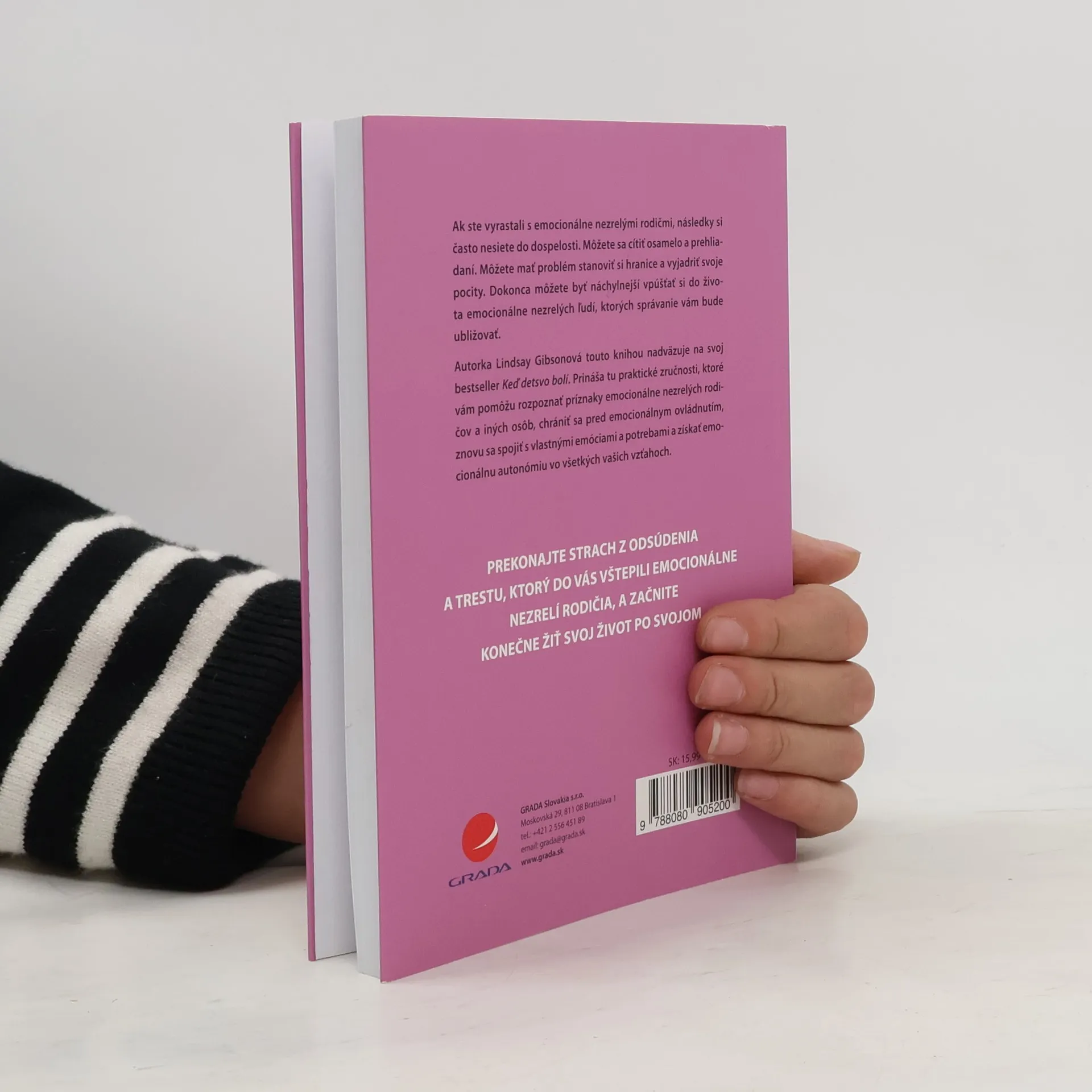 Prekonajte strach z odsúdenia a trestu, ktorý do vás vštepili emocionálne nezrelí rodičia a začnite konečne žiť svoj život po svojom. Ak ste vyrastali s emocionálne nezrelými rodičmi, následky si často nesiete do dospelosti. Môžete sa cítiť osamelo a prehliadaní. Môžete mať problém stanoviť si hranice a vyjadriť svoje pocity. Dokonca môžete byť náchylnejší vpúšťať si do života emocionálne nezrelých ľudí, ktorých správanie vám bude ubližovať.Autorka Lindsay Gibsonová touto knihou nadväzuje na svoj bestseller Keď detstvo bolí. Prináša tu praktické zručnosti, ktoré vám pomôžu rozpoznať príznaky emocionálne nezrelých rodičov a iných osôb, chrániť sa pred emocionálnym ovládnutím, znovu sa spojiť s vlastnými emóciami a potrebami a získať emocionálnu autonómiu vo všetkých vašich vzťahoch.