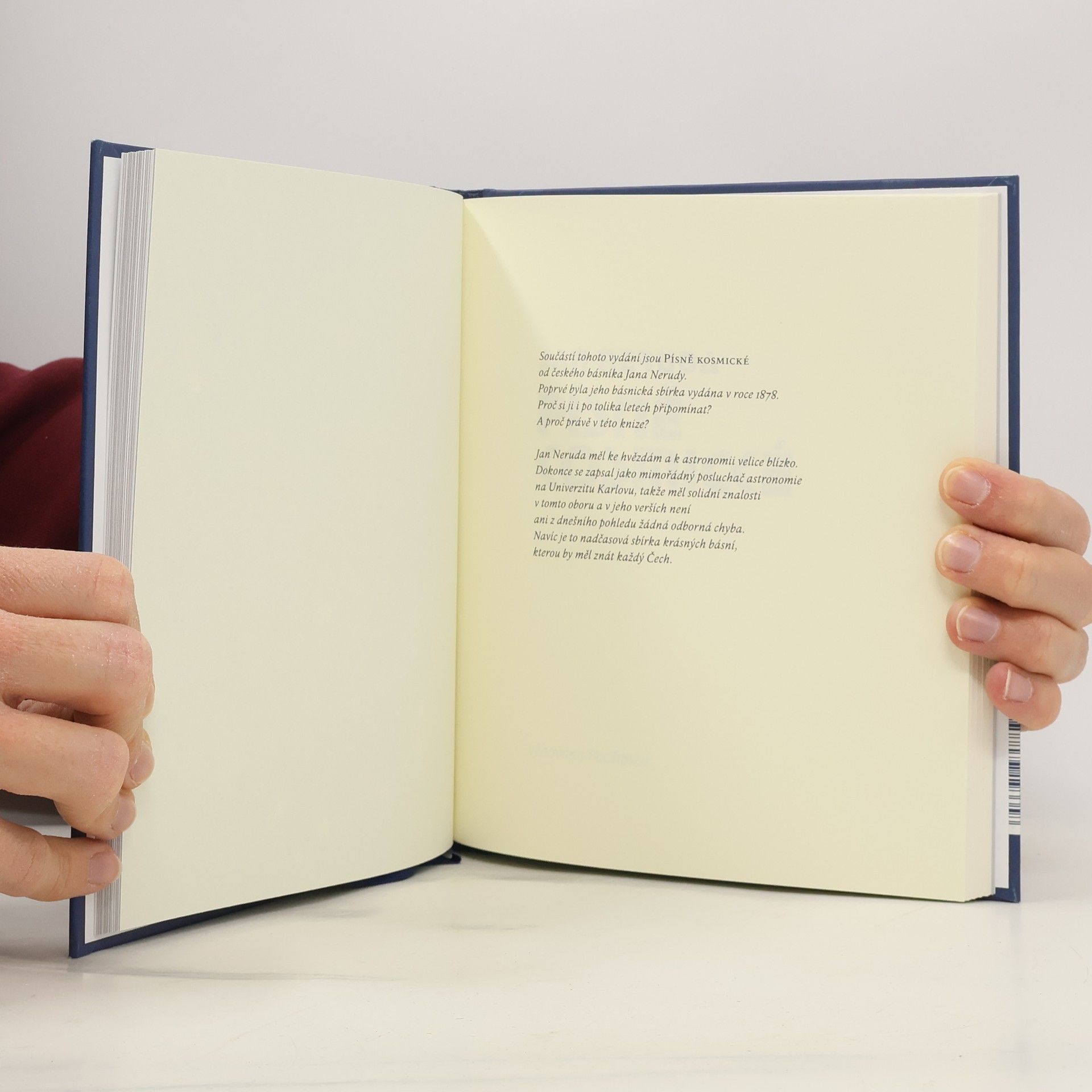 Souborné vydání dvou knih, které spojují dva velikáni české literatury – Jiří Grygar a Jan Neruda – přináší na první pohled nesourodé, ale fascinující spojení. Jiří Grygar, známý astronom a astrofyzik, se tentokrát od svého oblíbeného tématu odklání a sdílí svůj vztah ke knihám, které ho v životě zásadně ovlivnily. Čtenáři se dozví, která kniha ho v osmi letech inspirovala stát se hvězdářem, nebo která česká kniha obletěla Zemi na palubě kosmické lodi. Grygar také uvádí na pravou míru sto astronomických omylů a přibližuje osudy autorů, z nichž mnohé osobně znal. Jeho vyprávění je podáno s šarmem a noblesou, přičemž nezapomíná na těžké časy, kdy publikování odvážných témat bylo obtížné. Příběhy spojené s tehdejším vydáváním působí dnes legračně a celou knihou se nese lehce humorné ladění. Jan Neruda, jehož Písně kosmické jsou součástí tohoto vydání, měl k astronomii blízko a jeho verše jsou bez odborných chyb. Tato nadčasová sbírka krásných básní by měla být známa každému Čechovi. Souborné vydání vychází k 80. narozeninám Jiřího Grygara.