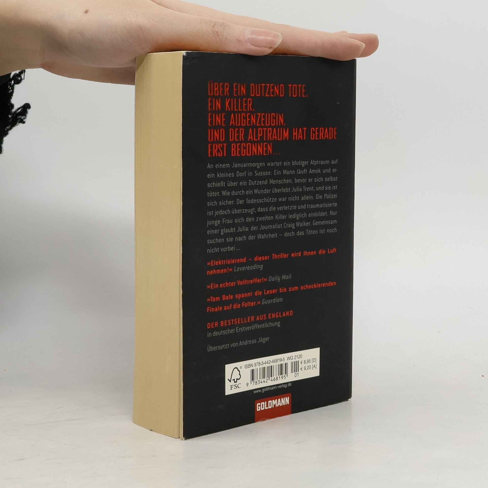 Zwölf Opfer. Zwei Täter. Nur eine Augenzeugin! An einem Januarmorgen wartet ein blutiger Alptraum auf ein kleines Dorf in Sussex: Ein Mann läuft Amok und erschießt über ein Dutzend Menschen, bevor er sich selbst richtet. Wie durch ein Wunder überlebt Julia Trent das Massaker, und sie ist sich sicher: Der Todesschütze war nicht allein. Die Polizei ist jedoch überzeugt, dass die verletzte und traumatisierte junge Frau sich den zweiten Schützen lediglich einbildet. Nur einer glaubt Julia: der Journalist Craig Walker. Gemeinsam suchen sie nach der Wahrheit- doch das Töten ist noch nicht vorbei.