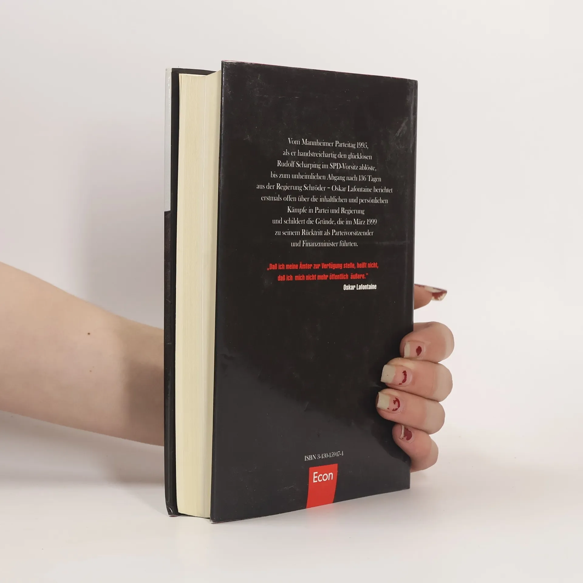 Vom Mannheimer Parteitag 1995, als er handstreichartig den glücklosen Rudolf Scharping im SPD-Vorsitz ablöste, bis zum unheimlichen Abgang nach 136 Tagen aus der Regierung Schröder - Oskar Lafontaine berichtet erstmals offen über die inhaltlichen und persönlichen Kämpfe in Partei und Regierung und schildert die Gründe, die im März 1999 zu seinem Rücktritt als Parteivorsitzender und Finanzminister führten.
