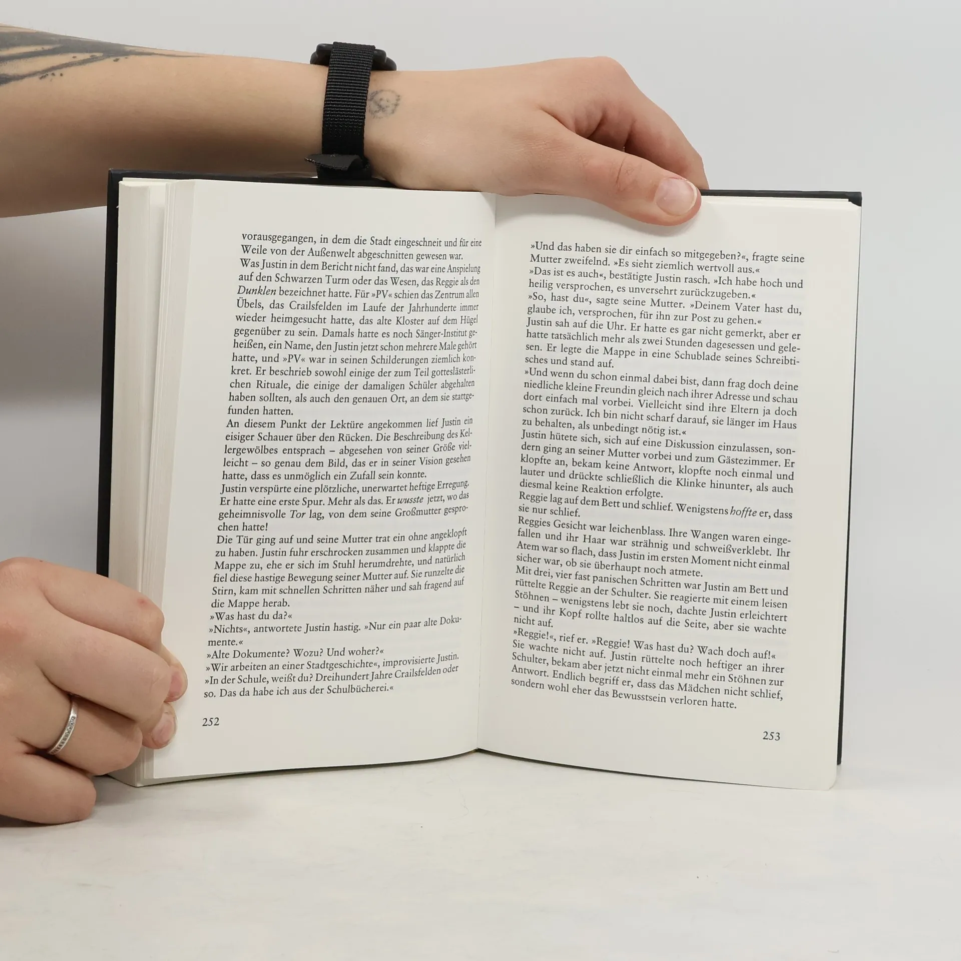 An dem Tag, an dem Justins Großmutter die Treppe hinunterstürzt und ins Krankenhaus kommt, beginnt sich nicht nur das Leben ihres Enkels zu verändern. Etwas Unheimliches legt sich über die kleine Stadt, die durch dichten Schneefall von der Außenwelt abgeschnitten wird, und macht die Menschen aggressiv. Die Katzen seiner Großmutter zeigen Justin den Ursprung dieser Bedrohung: die brandgeschwärzten Ruinen des alten Klosters auf dem Hügel. Dort stand im Mittelalter der Schwarze Turm, in dem der „Dunkle“ mit seinen bösen Kräften herrschte. Justins Großmutter, als Hexe verschrien, besaß die Gabe, diese Kräfte zurückzuhalten. Nun muss Justin diese Aufgabe übernehmen. Dabei stehen ihm die Katzen und ein geheimnisvolles Mädchen zur Seite. Doch die Tore zu der anderen, unheilbringenden Welt sind bereits geöffnet. Der Stadt und ihren Menschen droht deer Untergang, wenn es Justin nicht gelingt, die höllischen Mächte zu bannen. Ein aussichtslos scheinender Kampf beginnt, in den die Katzen und das Mädchen immer wieder entscheidend eingreifen. Aber dann steht Justin dem „Dunklen“ selbt gegenüber.