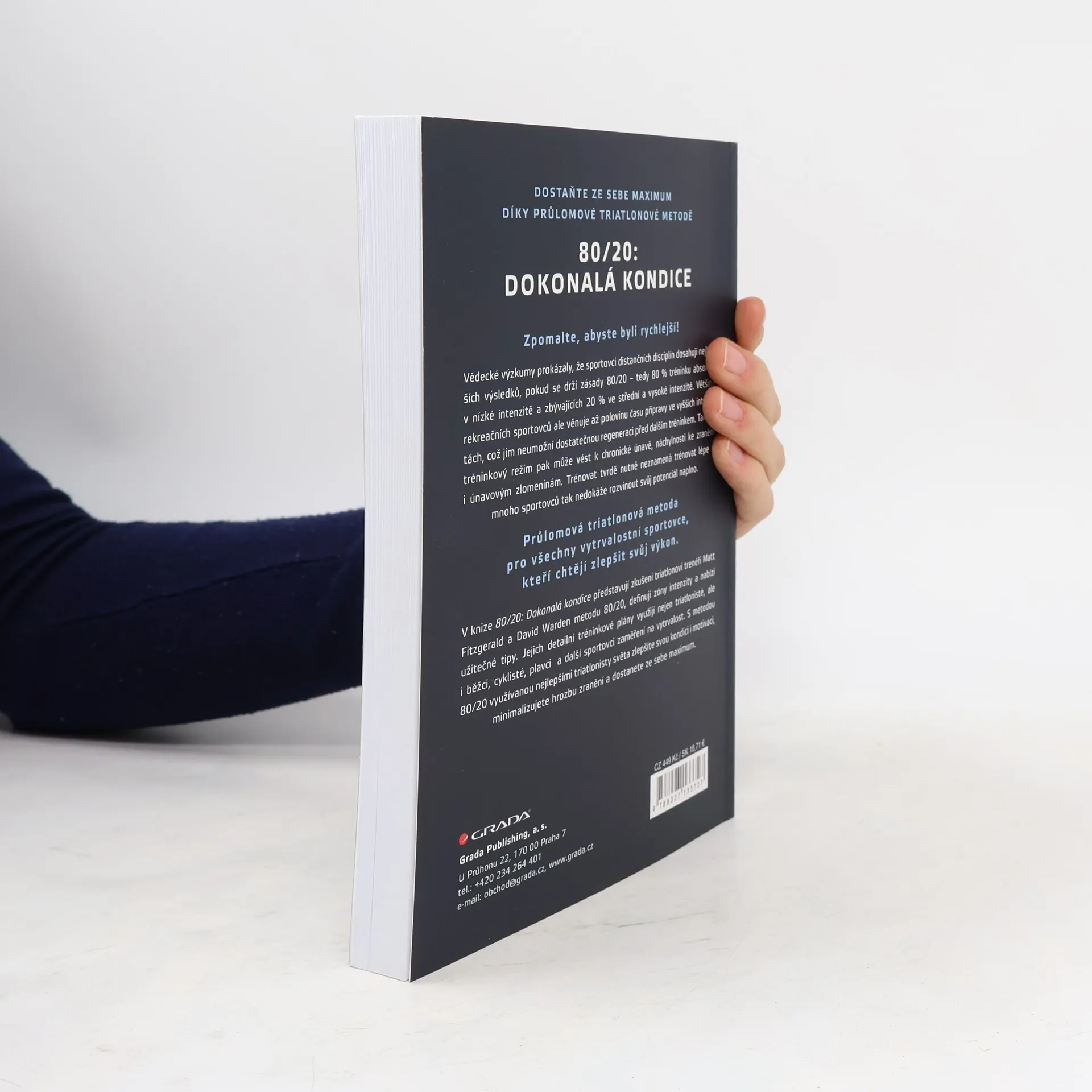 Zpomalte, abyste byli rychlejší! Vědecké výzkumy prokázaly, že sportovci distančních disciplín dosahují nejlepších výsledků, pokud se drží zásady 80/20 – tedy 80 % tréninku absolvují v nízké intenzitě a zbývajících 20 % ve střední a vysoké intenzitě. Většina rekreačních sportovců ale věnuje až polovinu času přípravy ve vyšších intenzitách, což jim neumožní dostatečnou regeneraci před dalším tréninkem. Takový tréninkový režim pak může vést k chronické únavě, náchylnosti ke zranění i únavovým zlomeninám. Trénovat tvrdě nutně neznamená trénovat lépe – mnoho sportovců tak nedokáže rozvinout svůj potenciál naplno. Průlomová triatlonová metoda pro všechny vytrvalostní sportovce, kteří chtějí zlepšit svůj výkon. V knize 80/20: Dokonalá kondice představují zkušení triatlonoví trenéři Matt Fitzgerald a David Warden metodu 80/20, definují zóny intenzity a nabízí užitečné tipy. Jejich detailní tréninkové plány využijí nejen triatlonisté, ale i běžci, cyklisté, plavci a další sportovci zaměření na vytrvalost. S metodou 80/20 využívanou nejlepšími triatlonisty světa zlepšíte svou kondici i motivaci, minimalizujete hrozbu zranění a dostanete ze sebe maximum.
