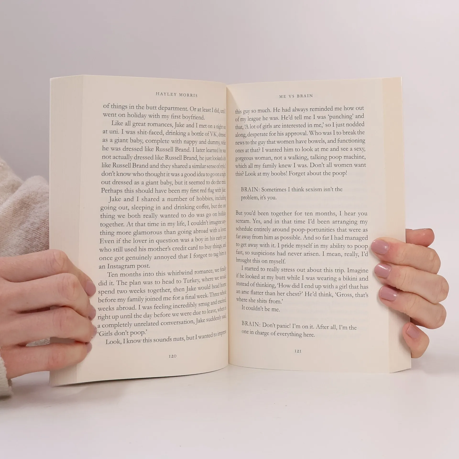 Brain- No one's going to buy your book Me- But it's good! My editor says so! Brain- Well she would, wouldn't she... Btw, didn't you leave your hair straighteners on? Me- I can't get into this now, I've got a book description to write Hello! Hayley Morris here. You might have seen me on your feed dressed up as a vagina. People seem to find me quite funny. I'm on a mission to prove once and for all that You. Are. Not. A. Weirdo... Or, maybe, We. Are. All. Weirdos. Yes, you're not the only one whose body does that gross thing you've never even told your mum about. And yes, we're all walking around saying embarrassing things constantly and waking up in a cold sweat at 3am thinking about them. So we might as well have a laugh about it, right? In this book, I've overthought absolutely everything so that you don't have to. I'm going to be talking about everything from dating to discharge, mental health to menstrual cups. I might not be able to banish your anxiety or make you feel 100% comfortable in your skin but I hope I can at least give you a break from the constant brain chatter and we can have a giggle about it together.