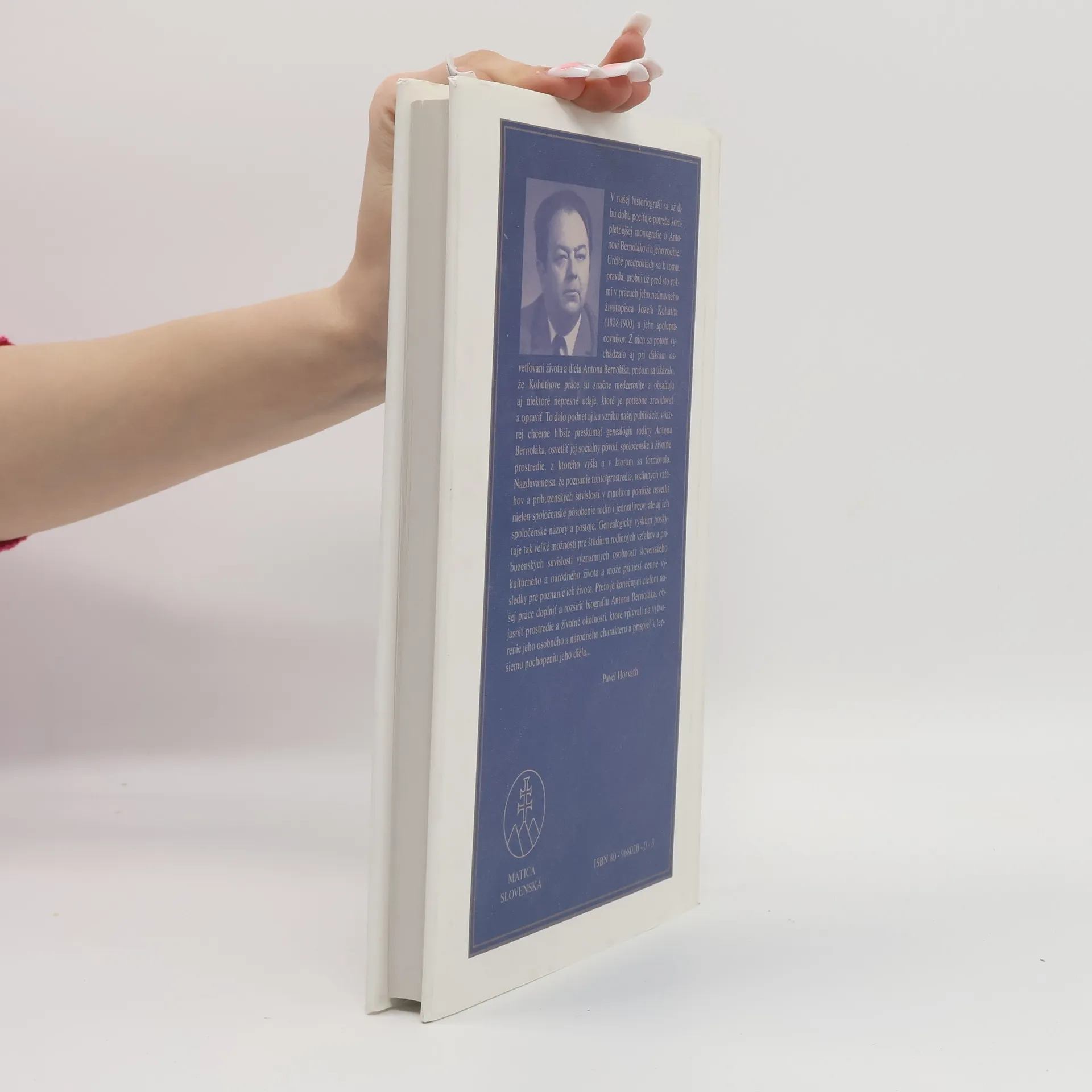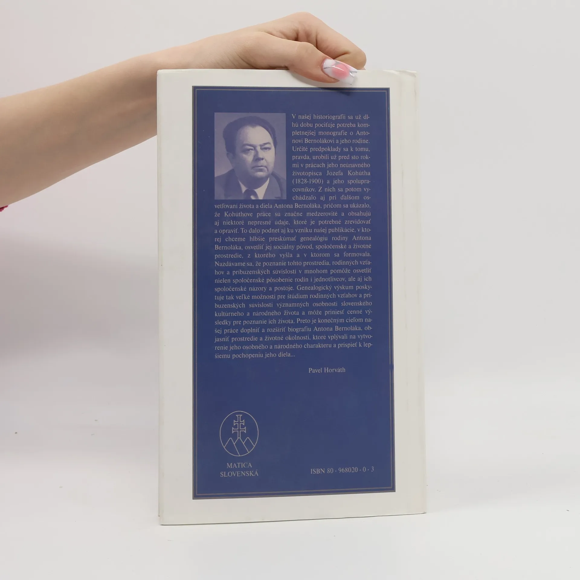 Komplexná monografia o živote a diele Antona Bernoláka - základnej osobnosti slovenského národného vývoja. V knihe sú podrobne zachytené nielen jeho životné osudy a osudy jeho diela, ale aj rodinné prostredie, z ktorého vyšiel, školy, na ktorých sa vzdelával a aj miesta, kde ako kňaz pôsobil v pastorácii alebo v cirkevných funkciách. Okrem toho je venovaná pozornosť aj osobnostnému a národnému profilu Antona Bernoláka, jeho rukopisnej a knižnej pozostalosti, posmrtným osudom jeho diela a nakoniec ucteniu jeho pamiatky vo forme rôznych pamätníkov alebo prejavov v umeleckej literatúre a vo výtvarnom umení.