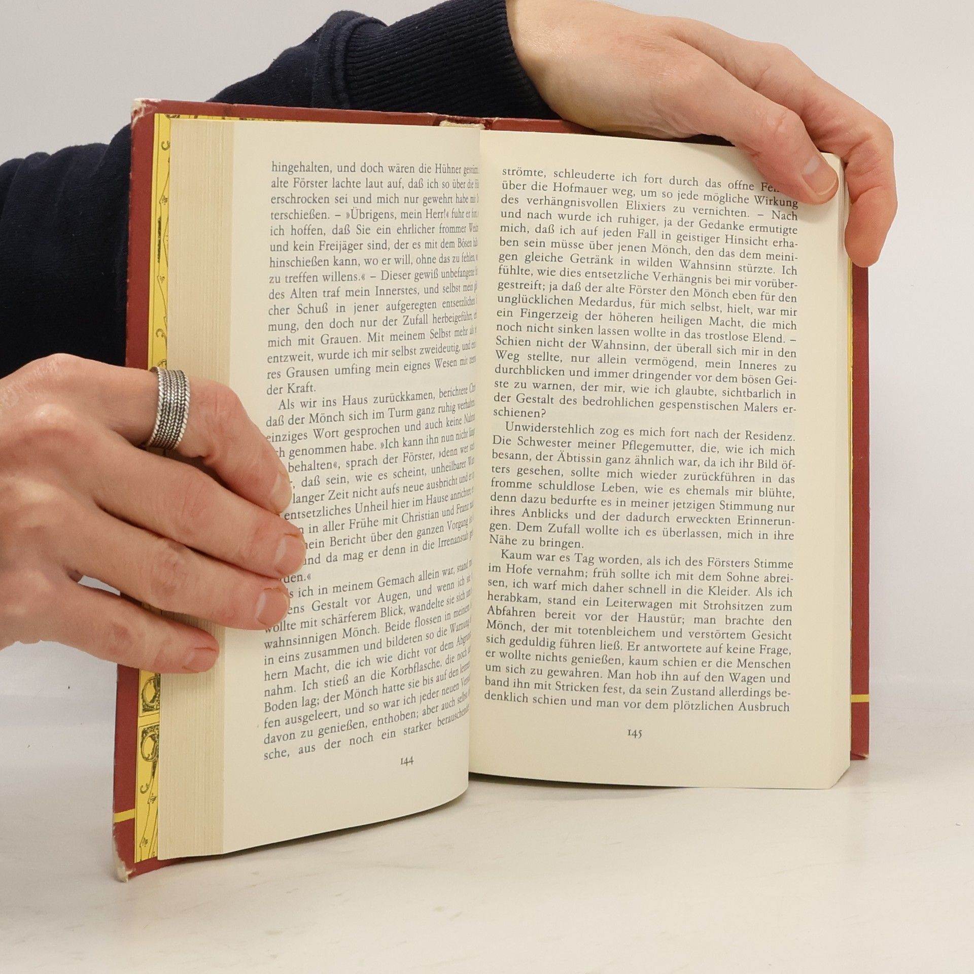 Manche Romane entfalten, obwohl vor fast 200 Jahren geschrieben, erst heute ihre ganze Wirkung. Waren zeitgenössische Leser von Die Elixiere des Teufels -- erstmals 1815 und 1816 in zwei Bänden erschienen -- eher überfordert, steht der Roman heute als ein Meisterwerk der Fantastik in zahlreichen Bücherschränken. Auf den ersten Blick erzählt Hoffmann eine nicht eben neue Schauergeschichte: Der Bruder Medardus ist ein hoch angesehenes, für seine feurigen Predigten bekanntes Mitglied der Klostergemeinde. Als ihm die Aufsicht über die Reliquienkammer übertragen wird, beginnt jedoch sein Niedergang. Unter den Schätzen befindet sich auch eine Flasche der Elixiere des Teufels, mit denen der Satan vor Jahrhunderten den heiligen Antonius verführen wollte. Ein Schluck aus der Flasche besiegelt seinen Abstieg. Obgleich seine Predigten feuriger denn je werden, verliert er sich in Selbstverliebtheit und entsagt so dem Göttlichen. In der Hoffnung, Medardus Seele zu retten schickt ihn der Prior des Klosters auf die Reise nach Rom. Einmal frei von den Mauern des Klosters, beginnt Medardus Kampf gegen den den Verführer. Seine Reise ist gegprägt von Lügen, Diebstahl und Mord. Immer wieder begegnet er Personen, die ihm erstaunlich ähnlich sind. In diesen findet er all seine Schwächen wieder, er schlüpft in ihre Rollen, versucht ihr Leben und findet letztlich doch wieder zu sich selbst zurück.