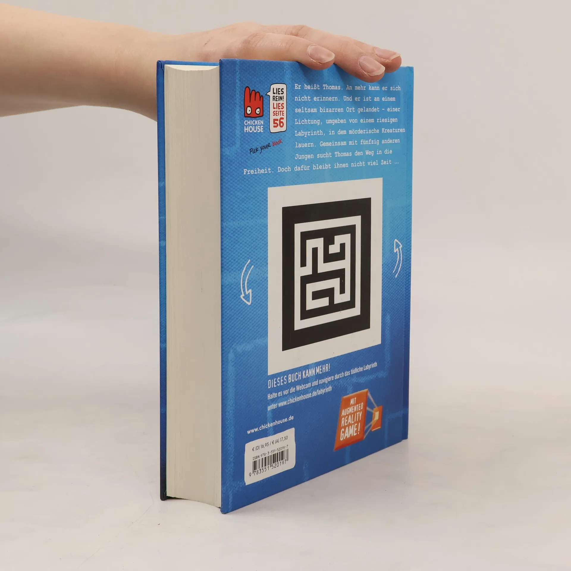 Sein Name ist Thomas. An mehr kann er sich nicht erinnern. Und er ist an einem bizarren Ort gelandet: eine Lichtung, umgeben von einem riesigen Labyrinth. Doch er ist nicht der Einzige. Zusammen mit fünfzig Jungen, denen es genauso geht wie ihm, sucht er einen Weg in die Freiheit. Der führt durch das Labyrinth, dessen gewaltige Mauern sich Nacht für Nacht verschieben und in dem mörderische Kreaturen lauern. Doch gibt es wirklich einen Weg hinaus? Ist das Ganze eine Prüfung? Und wer hat sich dieses grauenvolle Szenario ausgedacht? Den Jungen bleibt nicht viel Zeit, um das herauszufinden.